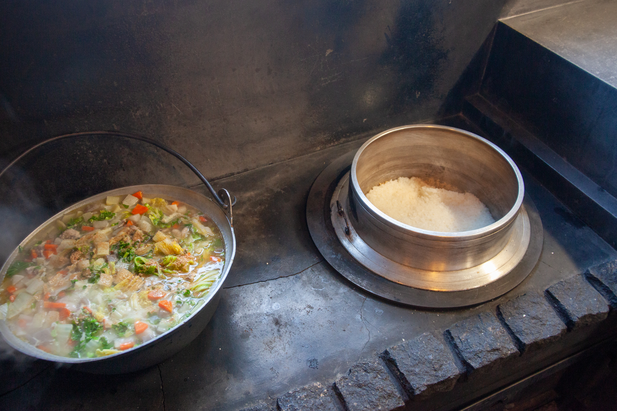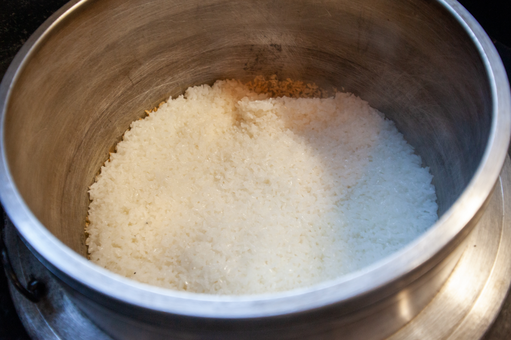 お米とお野菜をお鍋に入れて出来上がりを待ちます。