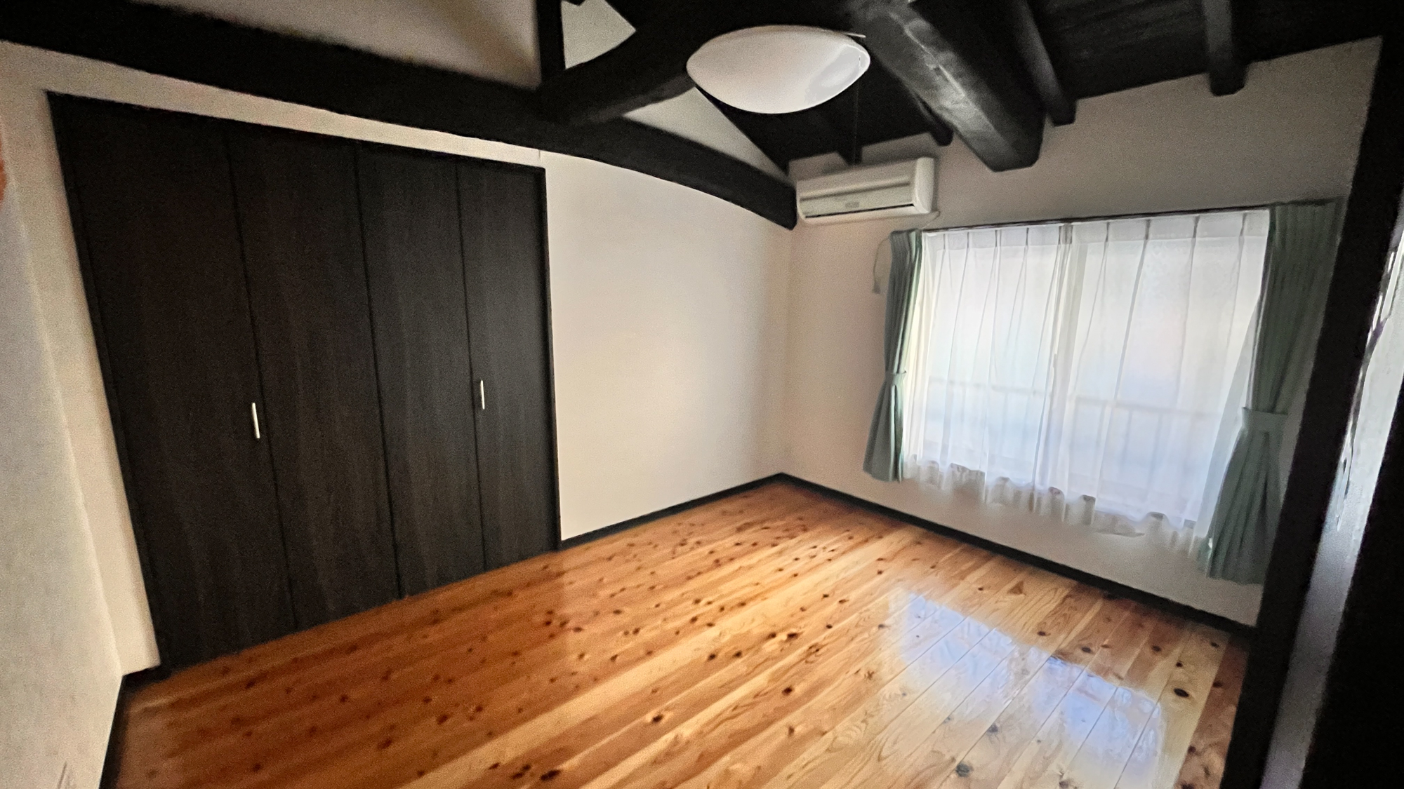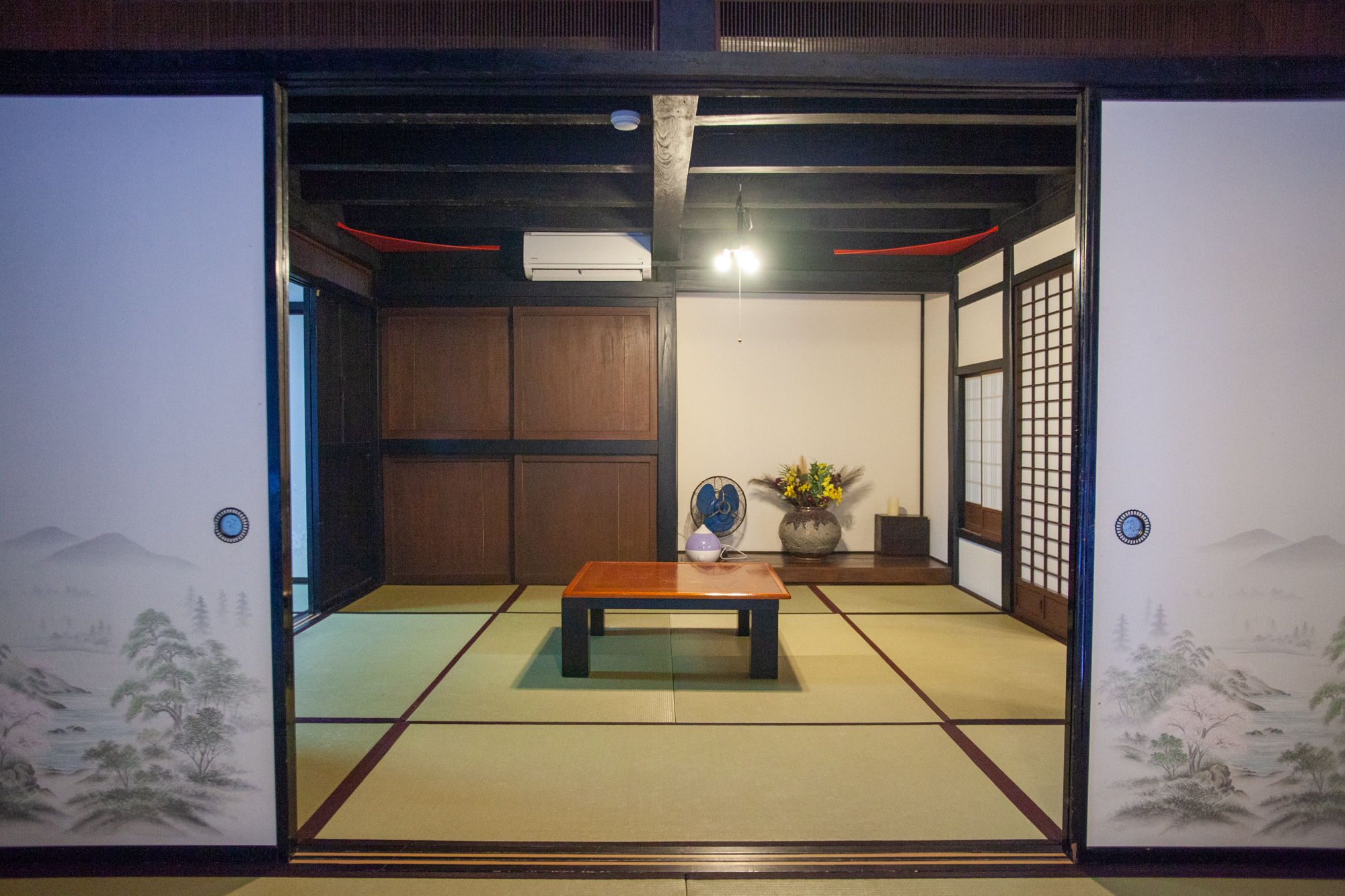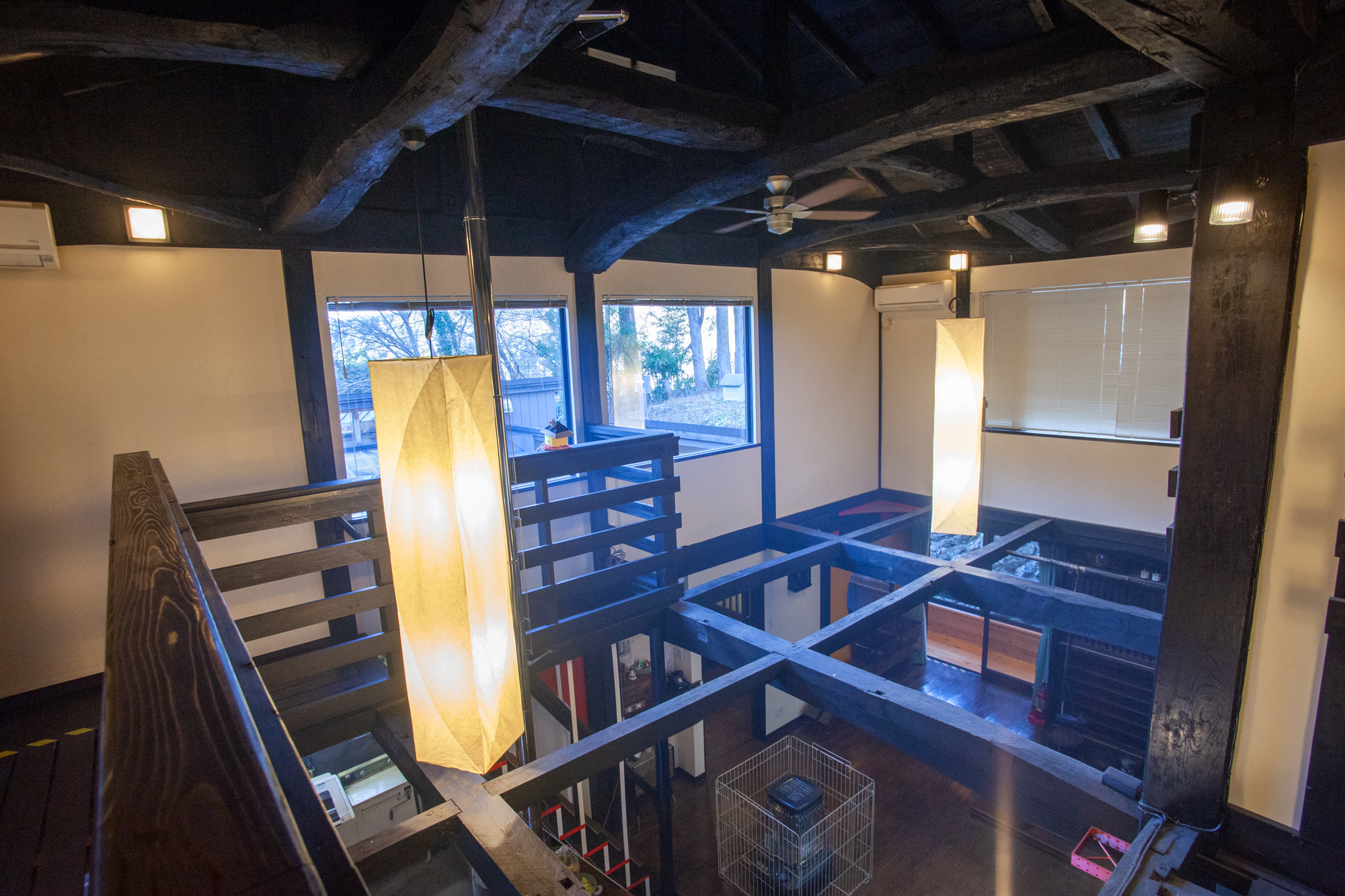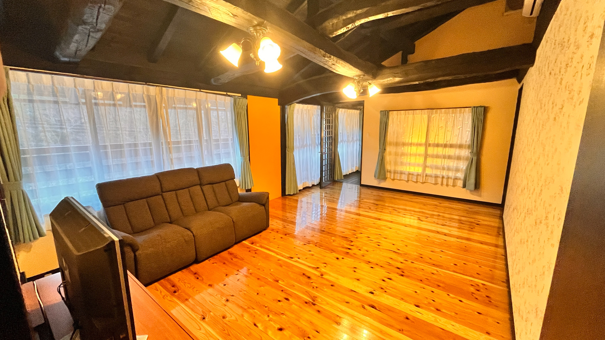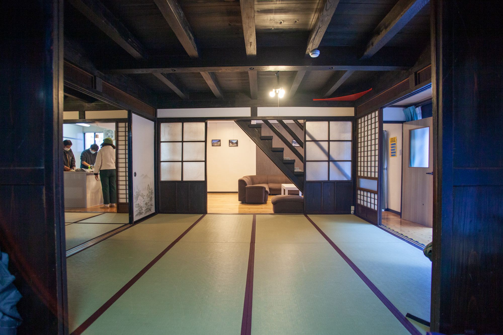 古民家の1階は、リノベしてかなりきれいにしていますが、ベースの部分は古民家をそのまま残しています。部屋広いなぁ。