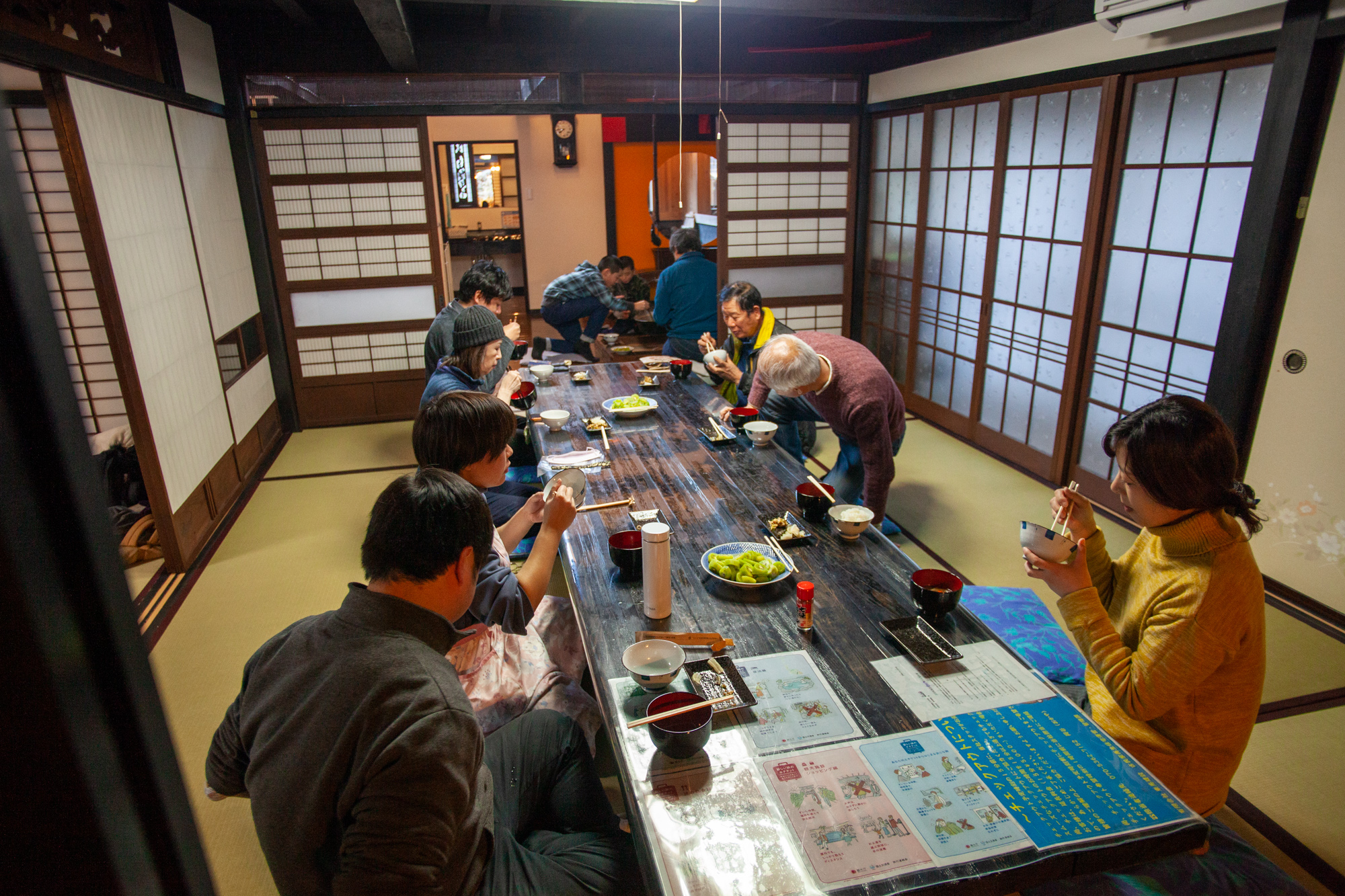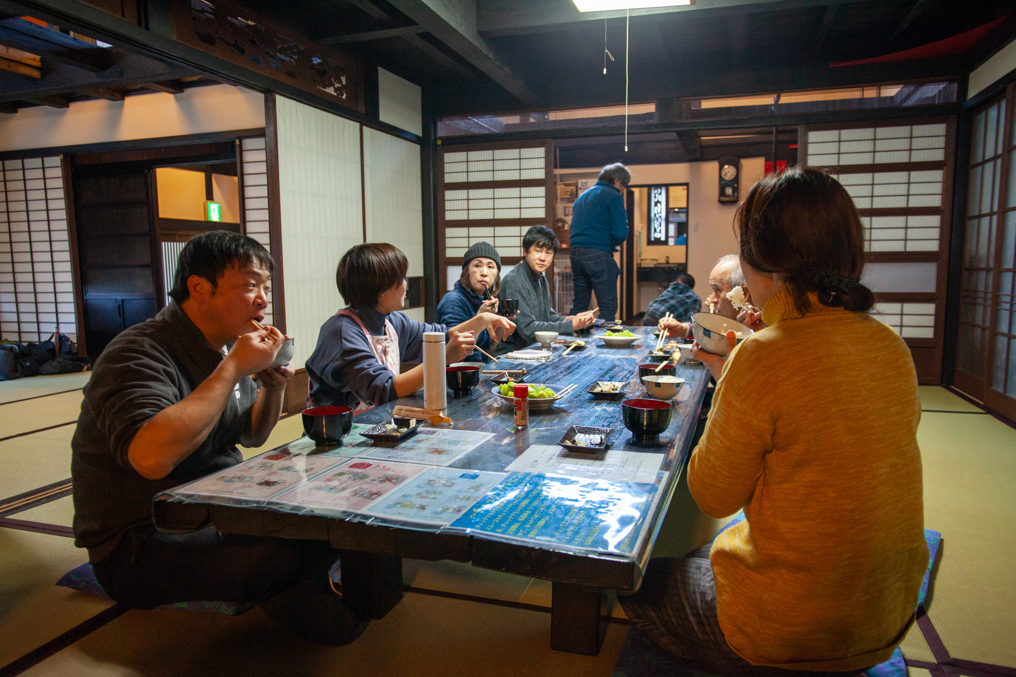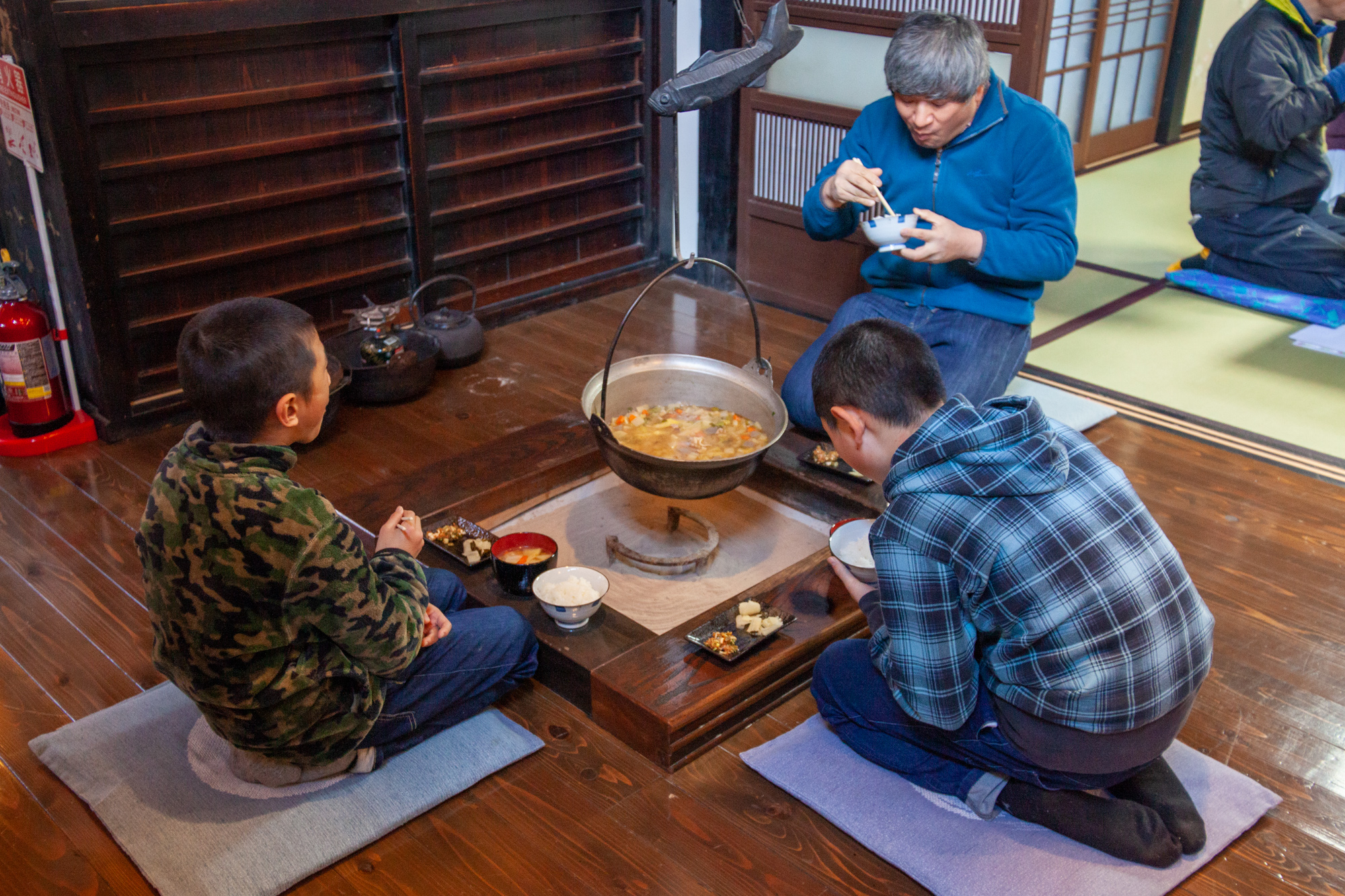 囲炉裏でランチタイムなご家族です。こちらも貴重な体験。