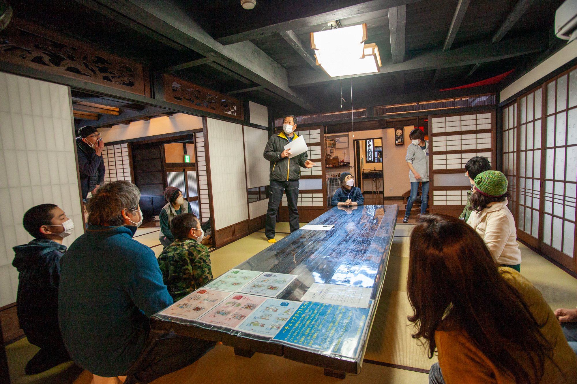 趣きと迫力がある古民家にテンションが上がりつつも、古民家でのスケジュール説明とかまど炊きの役割分担です。