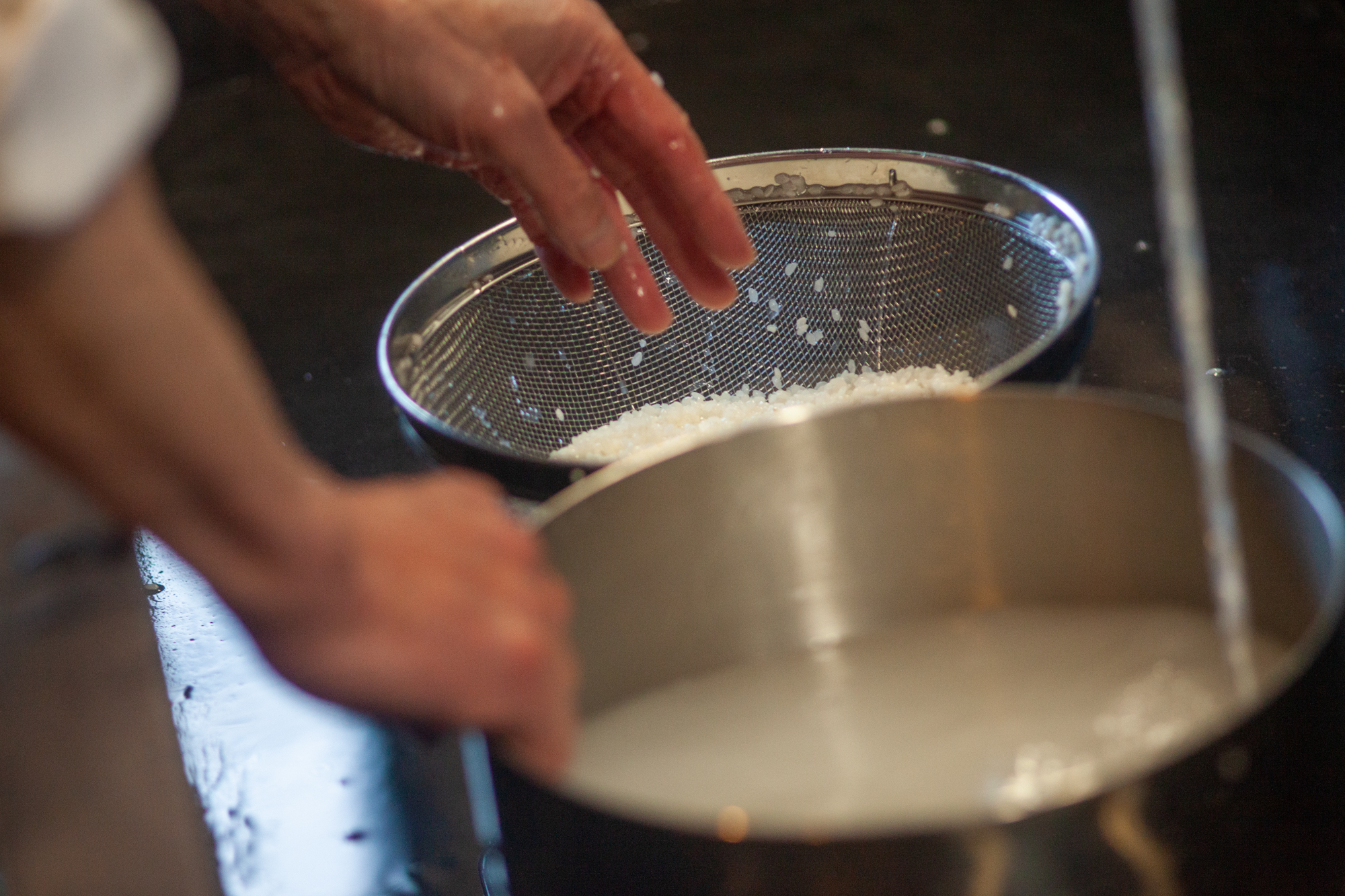 こちら、お米チーム。水が冷たいので大変ですが、慣れている人が先導して進めます。