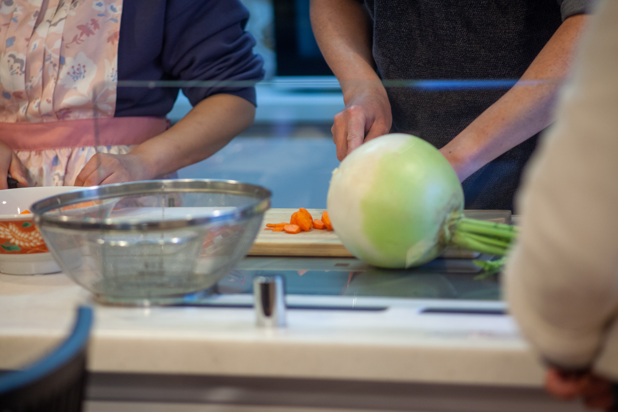 こちらは豚汁チーム。横瀬町で採れた大量の野菜を切っていきます。