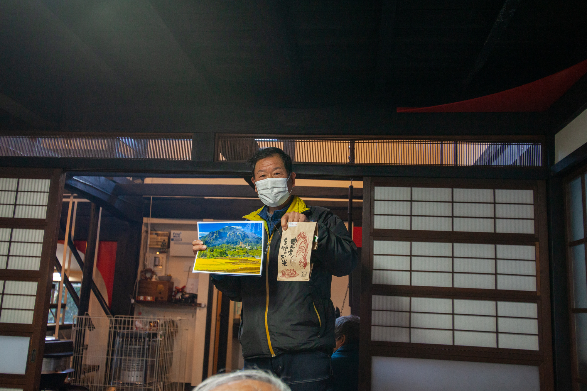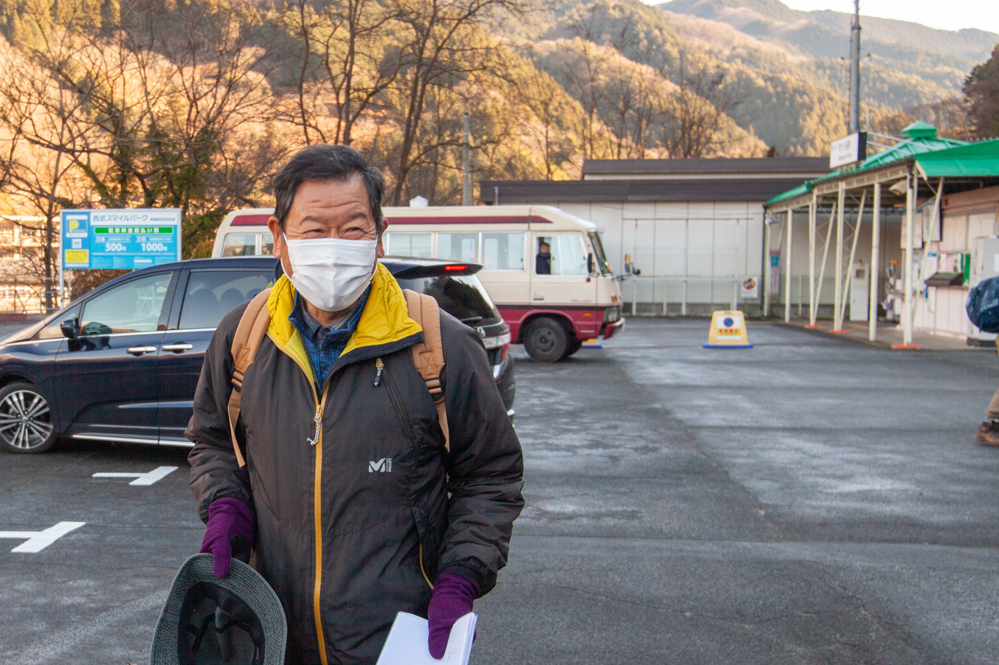 こちら、今回の廃校エモ写真&古民家かまど炊き体験ツアーのガイド、駒井信一さんです。笑顔が素敵。