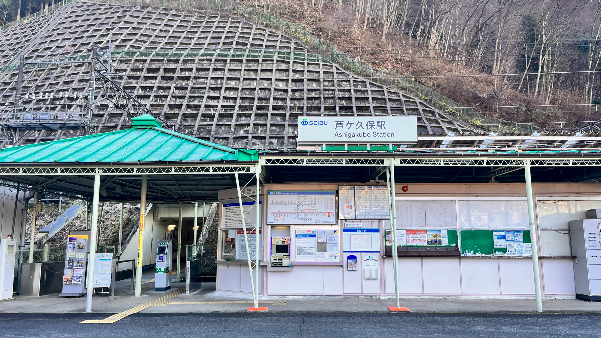 こちらは芦ヶ久保駅。池袋から乗り換え一回、約1時間半で着きます。