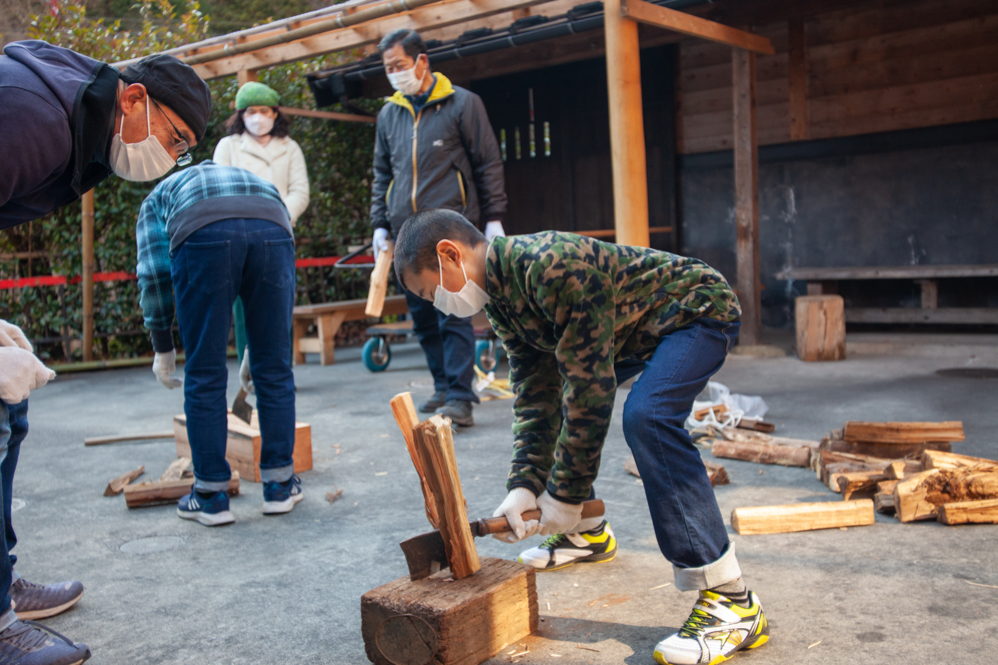 初めての薪割りでもスタッフの方が丁寧に教えてくれるので、こわくないです。小学生の子たちは本当に一生懸命たくさん薪割りしてくれました。