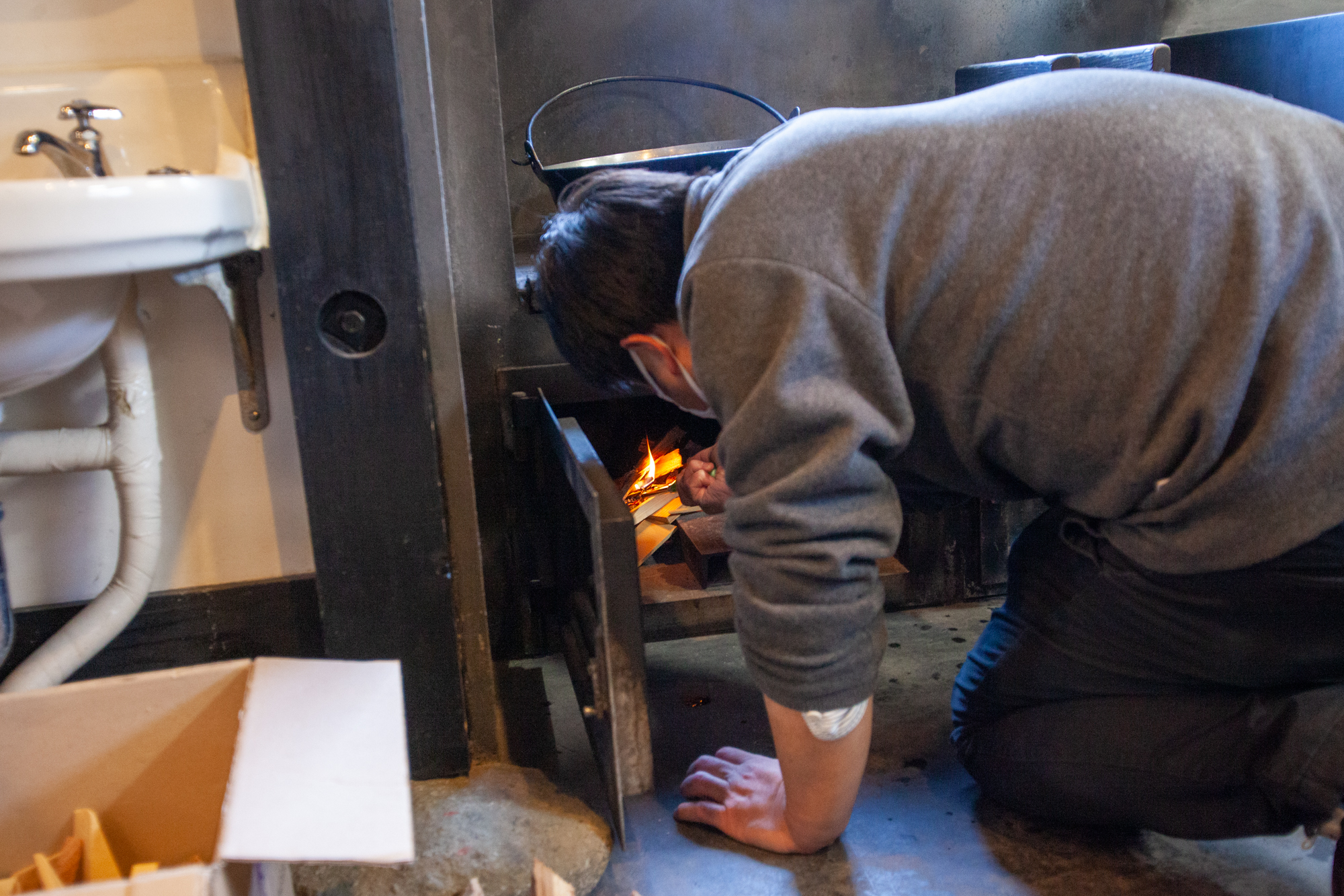 薪に火を付けるプロがいて、割とスムーズに火がついたのはラッキー!(手こずったらスタッフが助けてくれるはず)