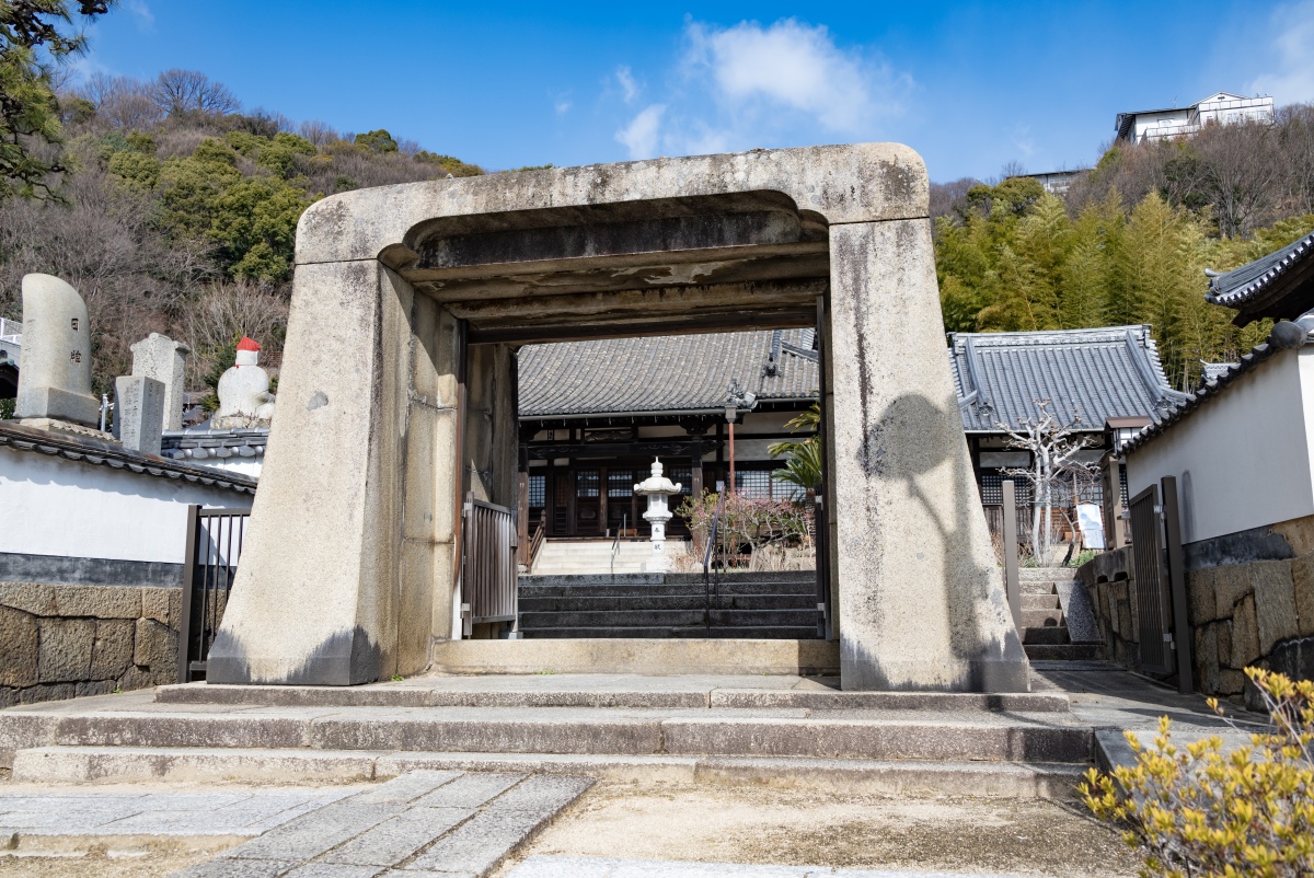 この立派な竜宮造りの石門も尾道石工の作品。ひとつの岩から作られたのではなく、いくつもの石を組み合わせて作っています。尾道石工の技巧が光る作品なのです。