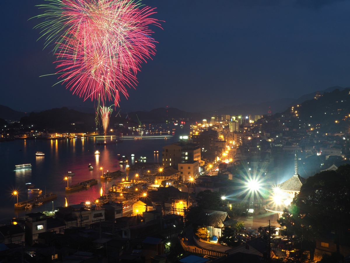 広島県内でも最大級の規模を誇る花火大会で、住吉神社の神事のひとつ。毎年7月末〜8月上旬に開催されています。前回開催された際は1万3000発もの花火が尾道の夜空を飾りました。