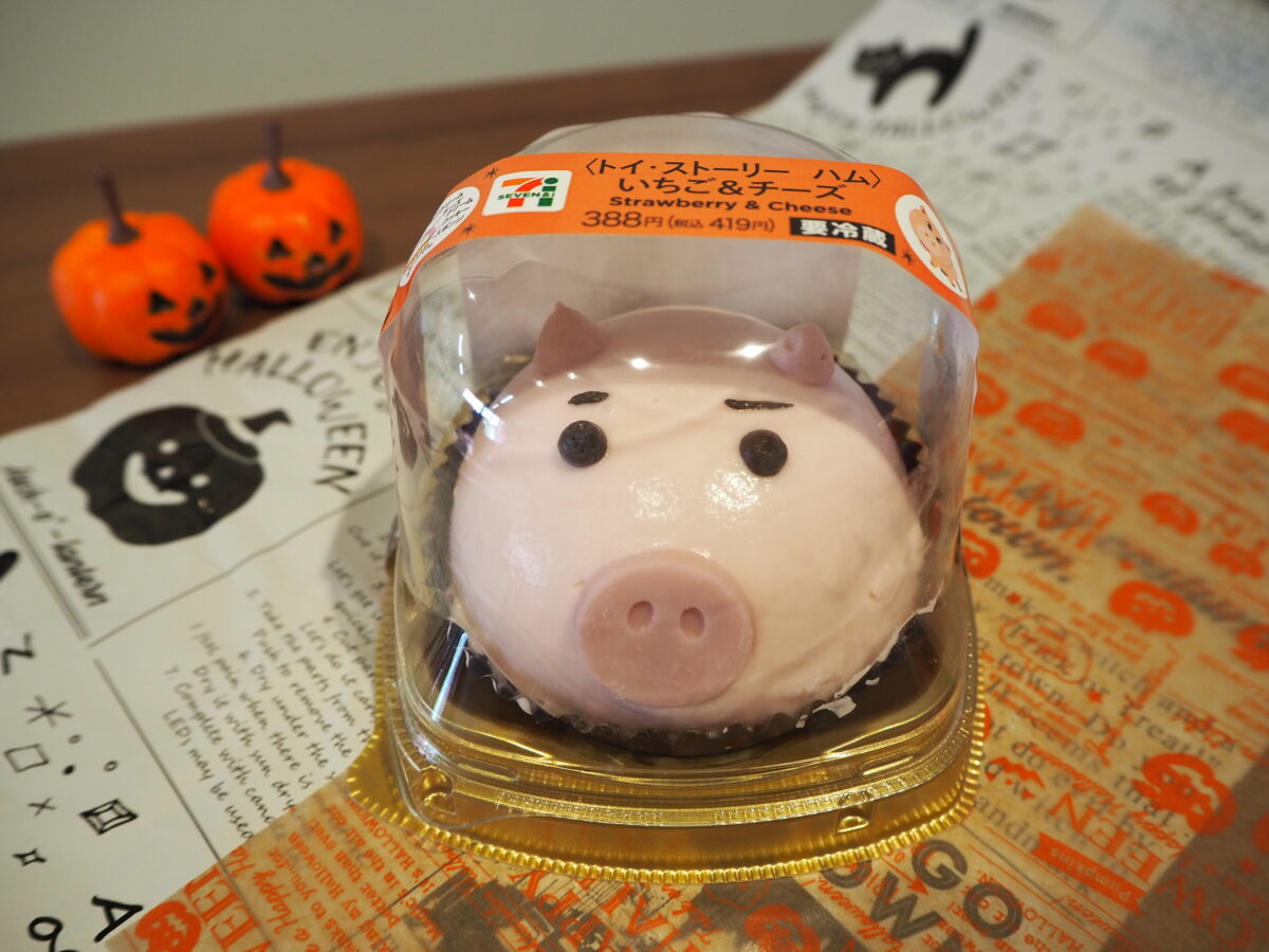 トイ・ストーリーのキャラクター、ブタの「ハム」を模ったケーキは、いちご&チーズ味。