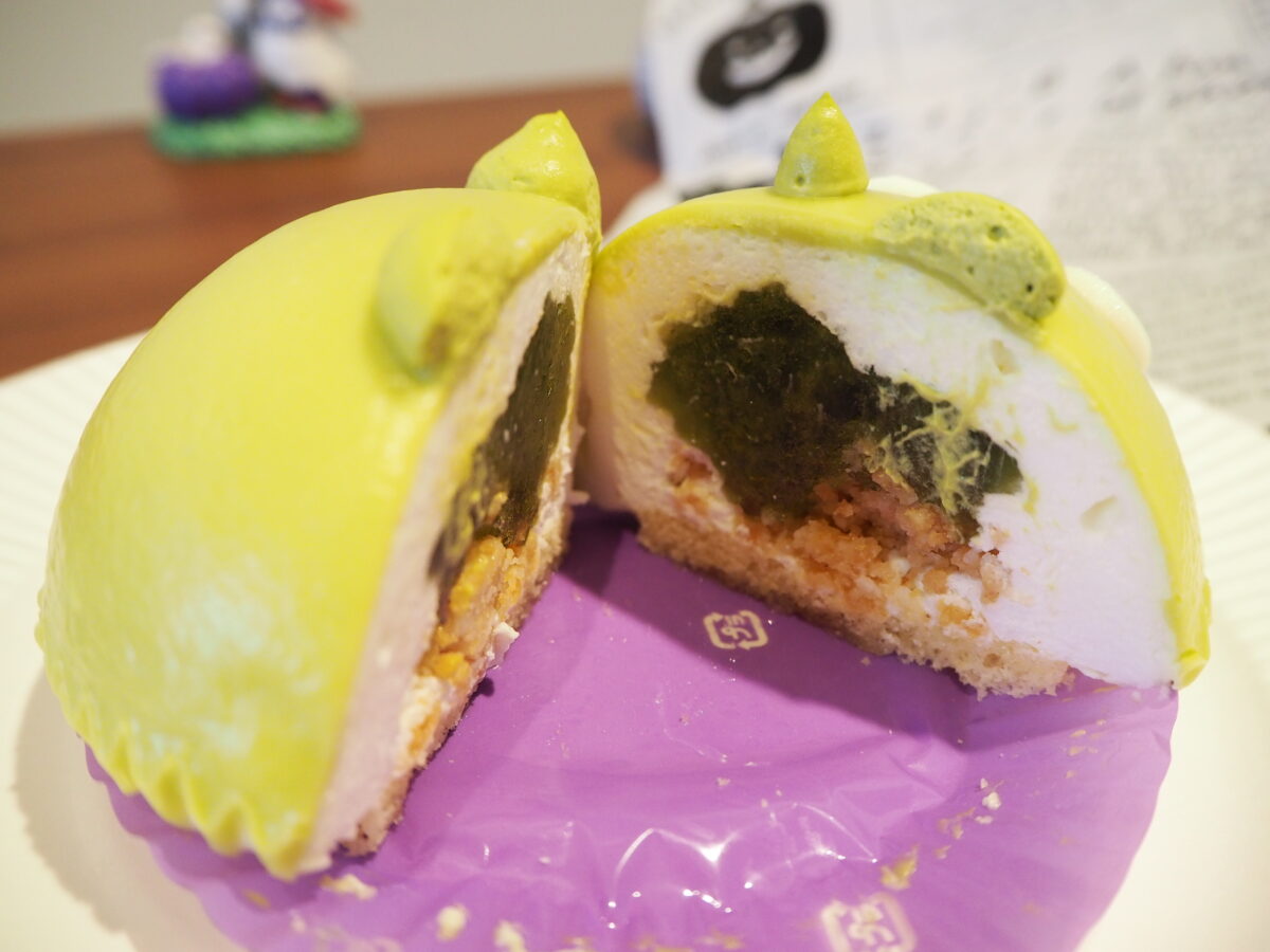外側も緑色。中にも緑色のクリーム?が詰まっています!オマツリジャパンメンバーの感想は??