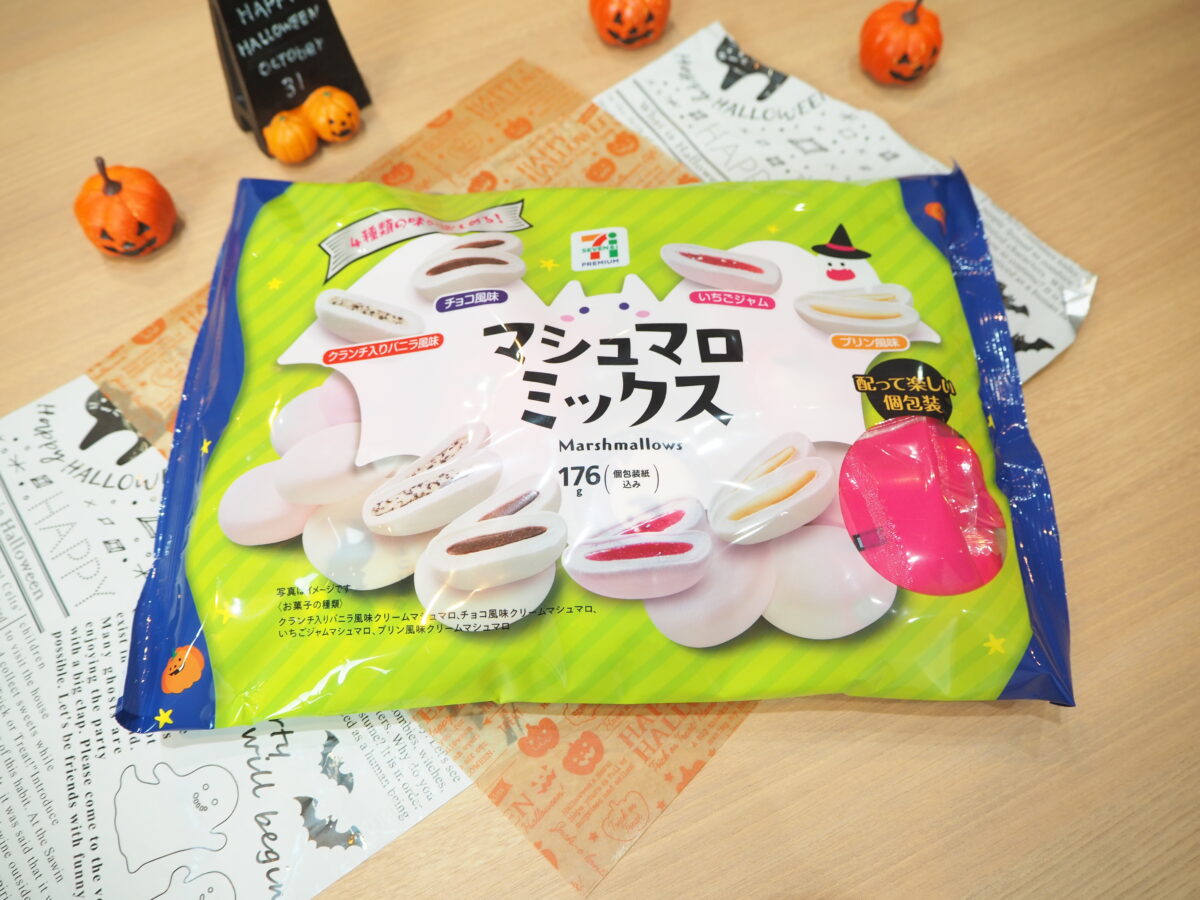 4種類の味が楽しめる「マシュマロミックス」は、お化けやジャックオランタンが描かれたハロウィンらしいパッケージ!