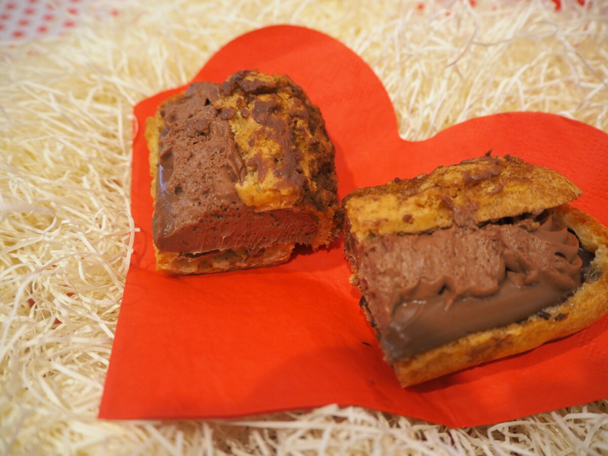 こちらの「エクレア ショコラ」の生地の中には、パリッとした食感のショコラと、ショコラ味のカスタードクリームとホイップクリームがたっぷり!