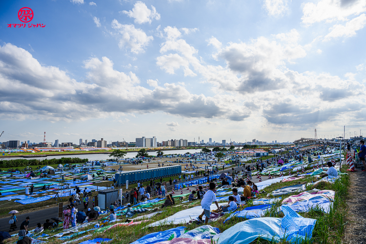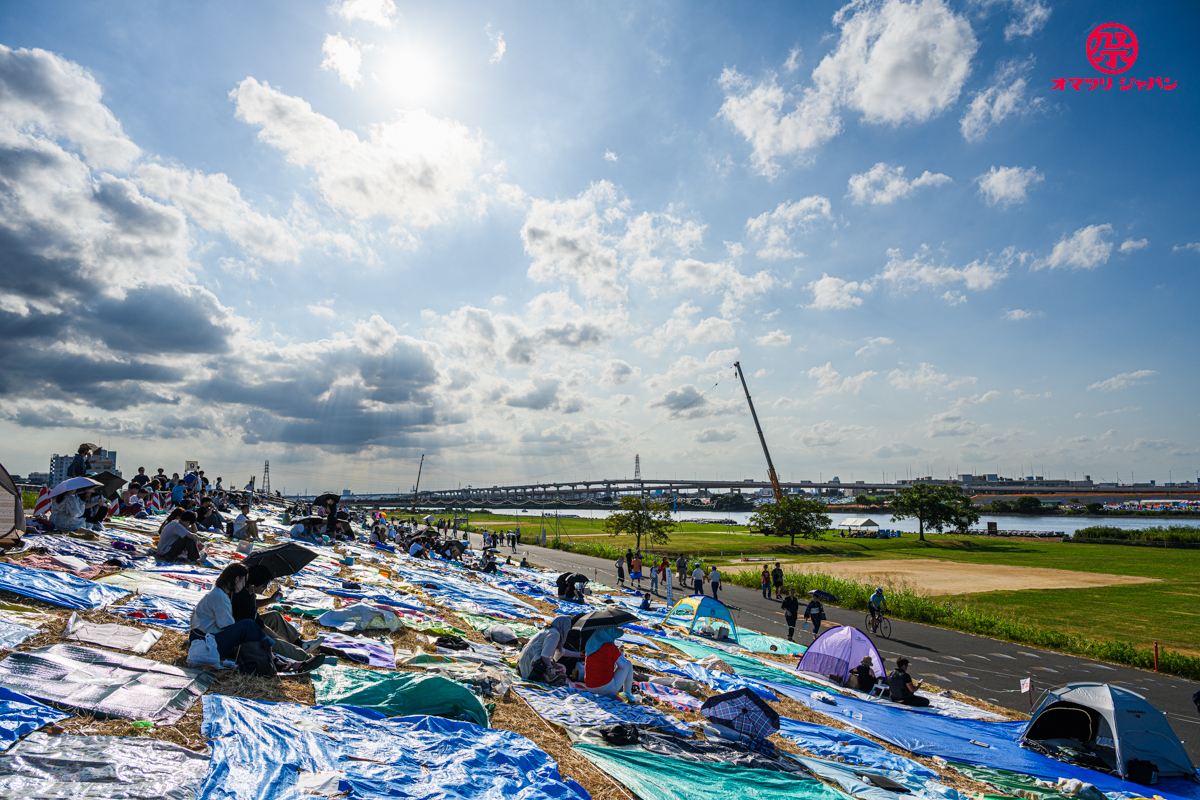 なお、場所取りは当日0時に解禁、通路上への場所取りや河川敷を傷つけるような行為(過去にはスプレー使用した悪質な行為もあった)は禁止されていますのでご留意を。(※場所取りに関するルールは変更される場合があります)
