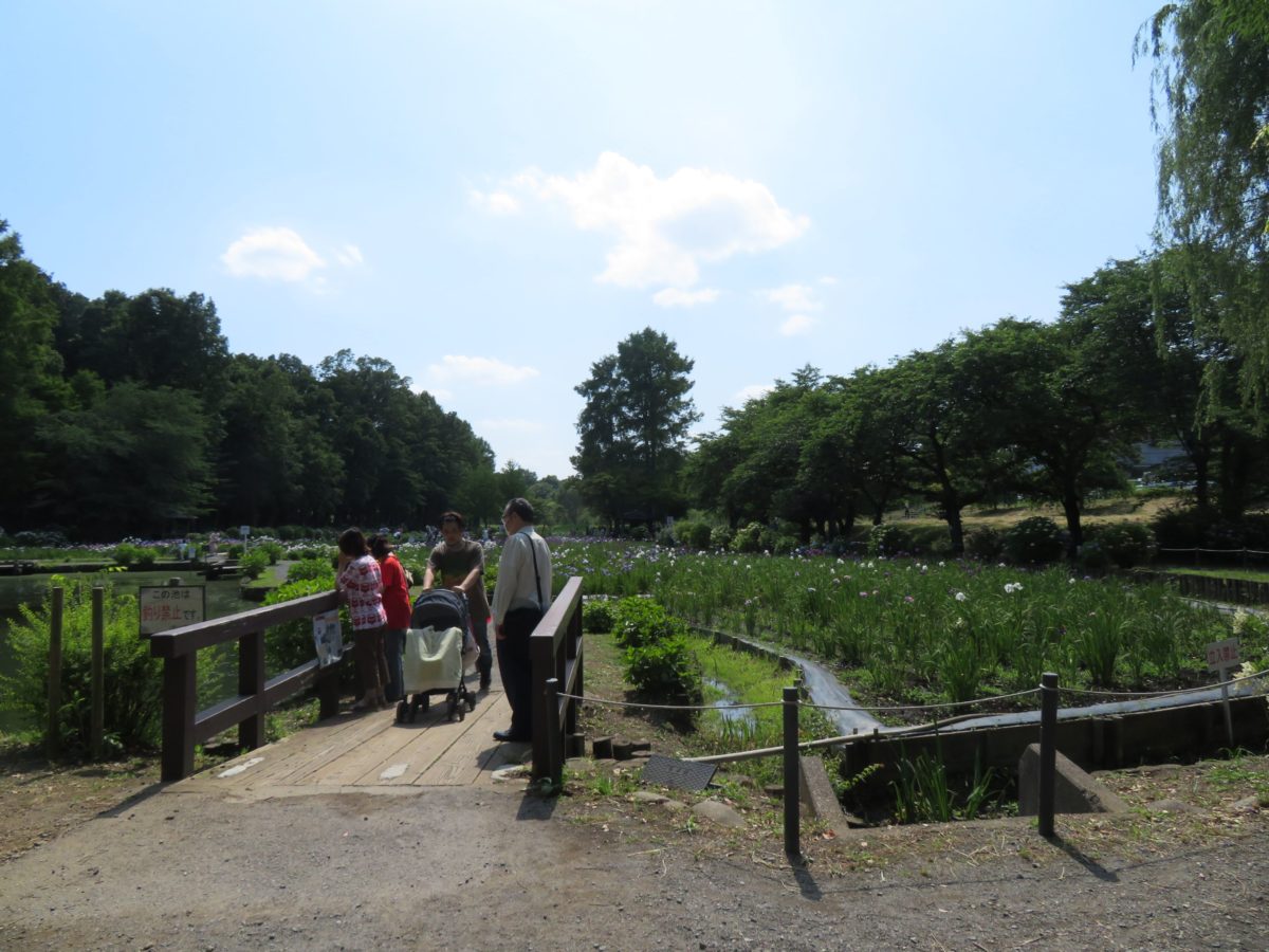 上尾丸山公園の花菖蒲田は、敷地内の北端近くにあります。約2,8000平方メートルの湿地に50種類前後の花菖蒲が約1万株、植栽され、園内を豊かに彩ります。