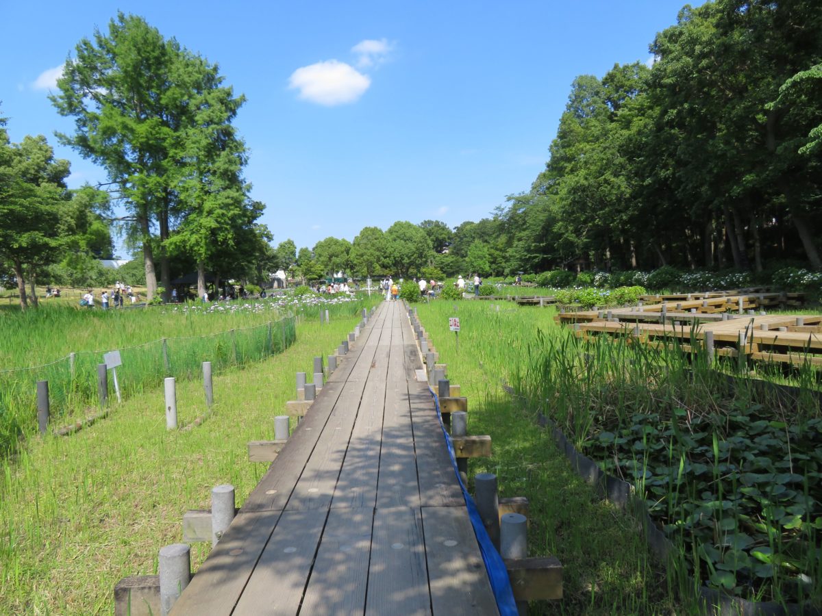 花菖蒲田の南端から公園の中心方向に向かう木道