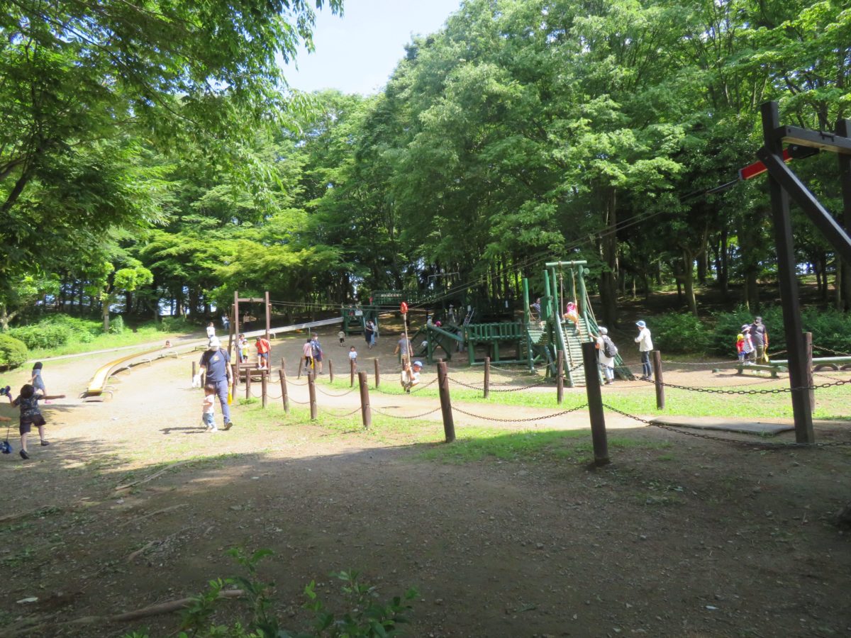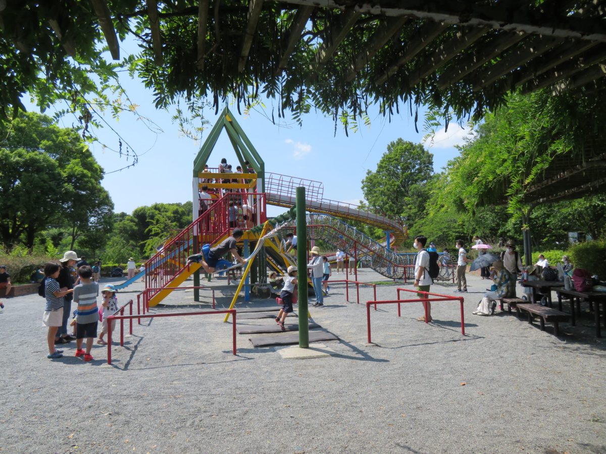 児童遊園地にはカラフルな遊具が揃い、アスレチックが楽しめる広場もあります。