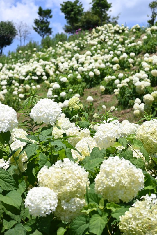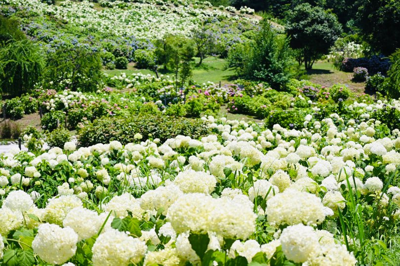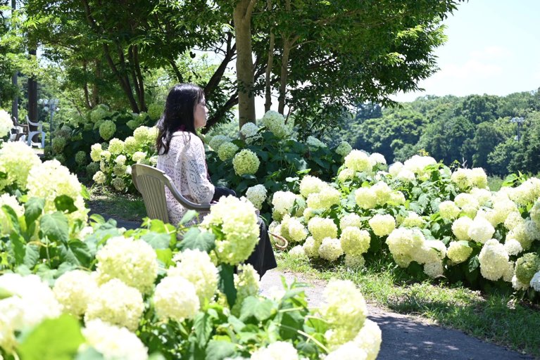 梅500本、藤1,800本、あじさい75,000株を育てている全国で初めての「福祉と環境を融合した花園」で、障がいを持つ方と施設利用者と職員が毎日、運営管理をされています。近年では「日本一のあじさいの丘陵地」として人気を集めています。