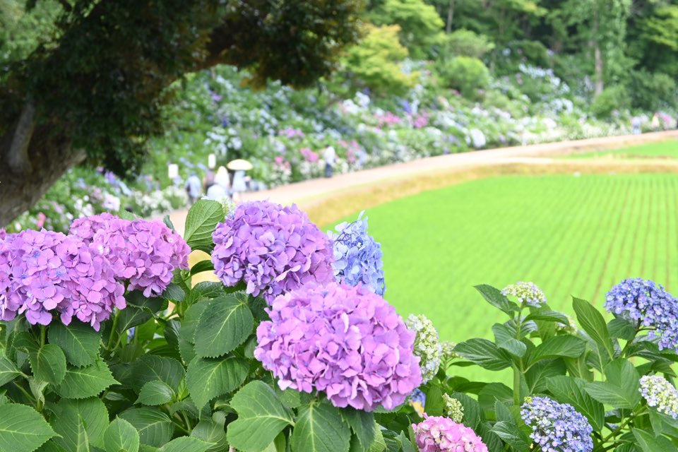 筆者もたくさんのあじさいの名所をみてきましたが、田んぼとあじさいを一緒に見たのは初めてでした。