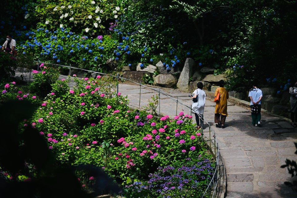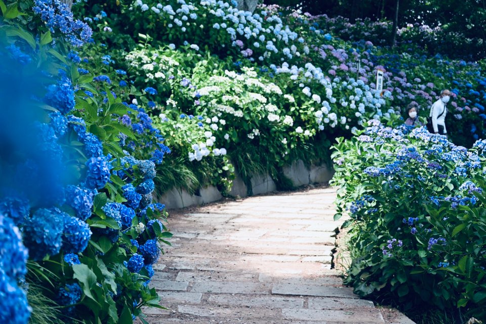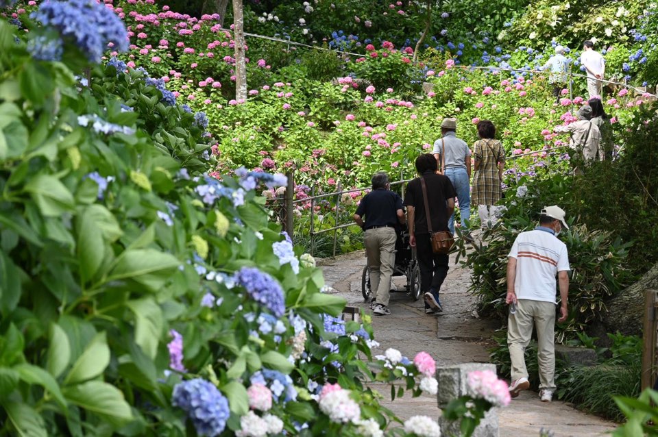 40,000㎡の境内に約100種類10,000株のあじさいが咲き誇り、県内外問わず、多くの方が訪れています。