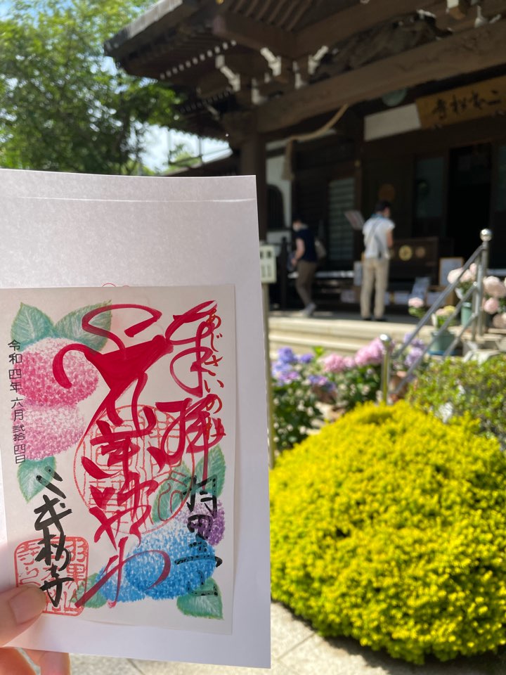毎年文字の色は変わるそうで、今年は赤い色。限定御朱印にも二本松寺名物の赤いあじさい「レッドバロン」が描かれています。