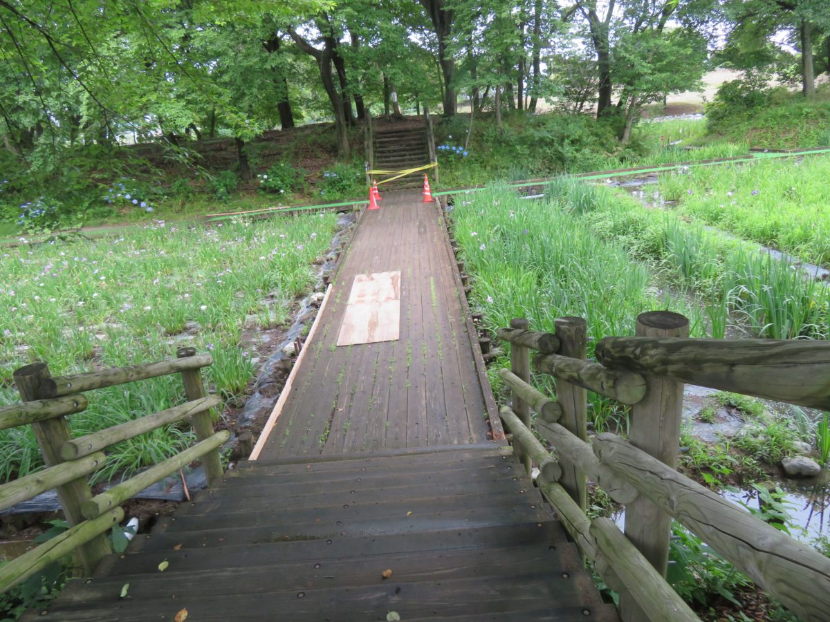花しょうぶ園に設けられる木道
