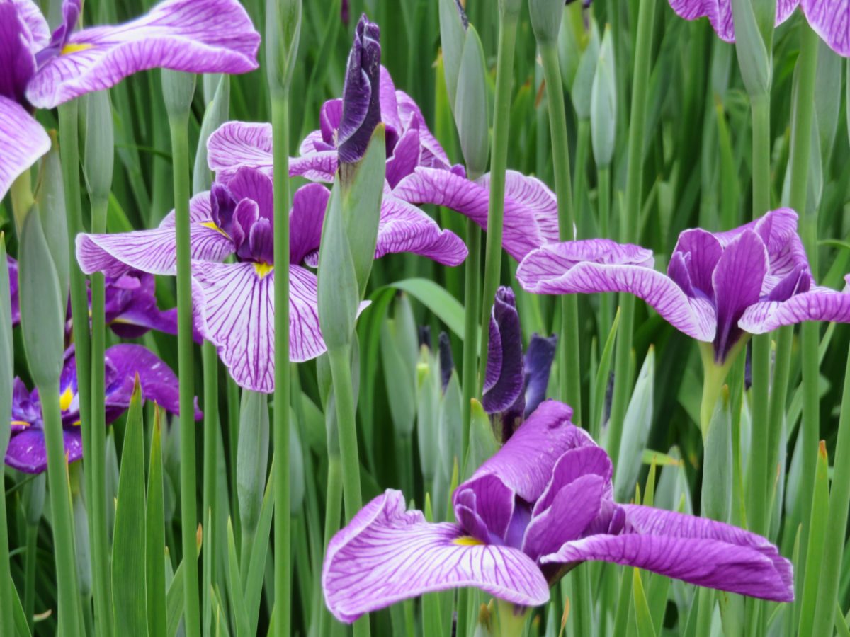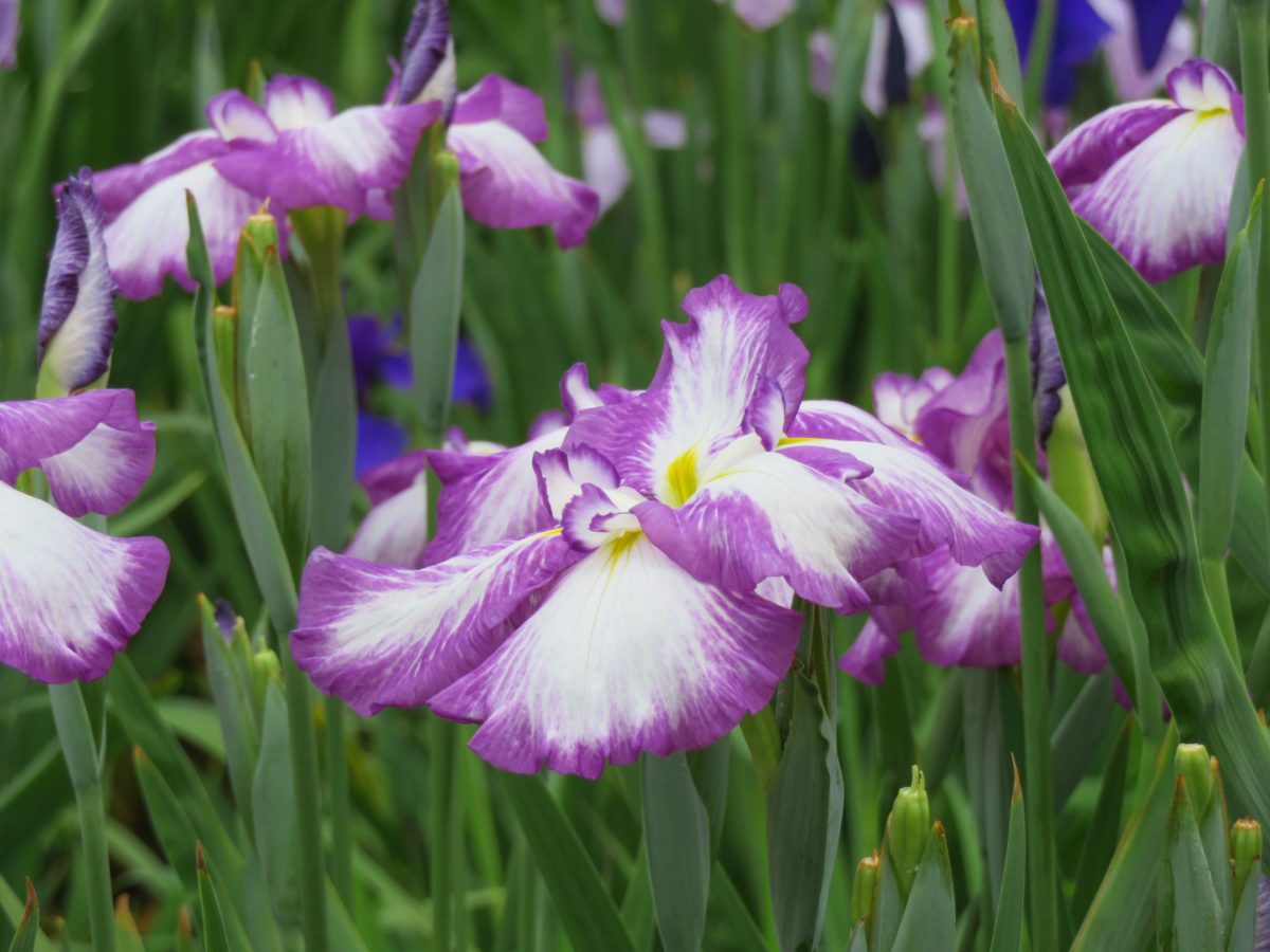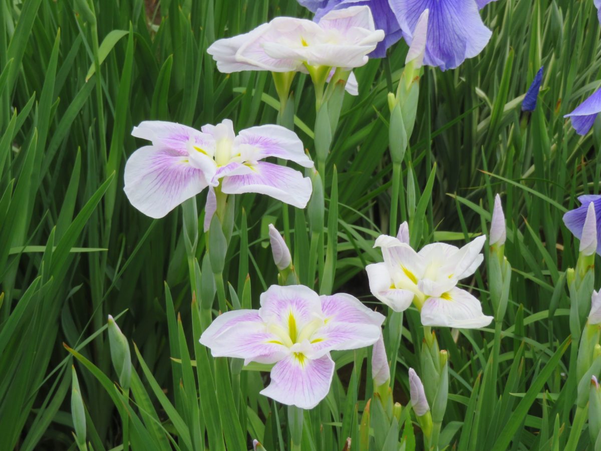 花しょうぶは、種類が豊富で数千種類が品種改良によって産み出されています。花弁の数や、花の開き方に加えて、花弁の模様にも注意を注ぐと、花しょうぶへの興味や愛着は底知れぬものとなることでしょう。花弁の表面の脈や筋、絞り、刷毛でぼかしたような模様、砂子模様、覆輪など、品種ごとに大きく異なります。