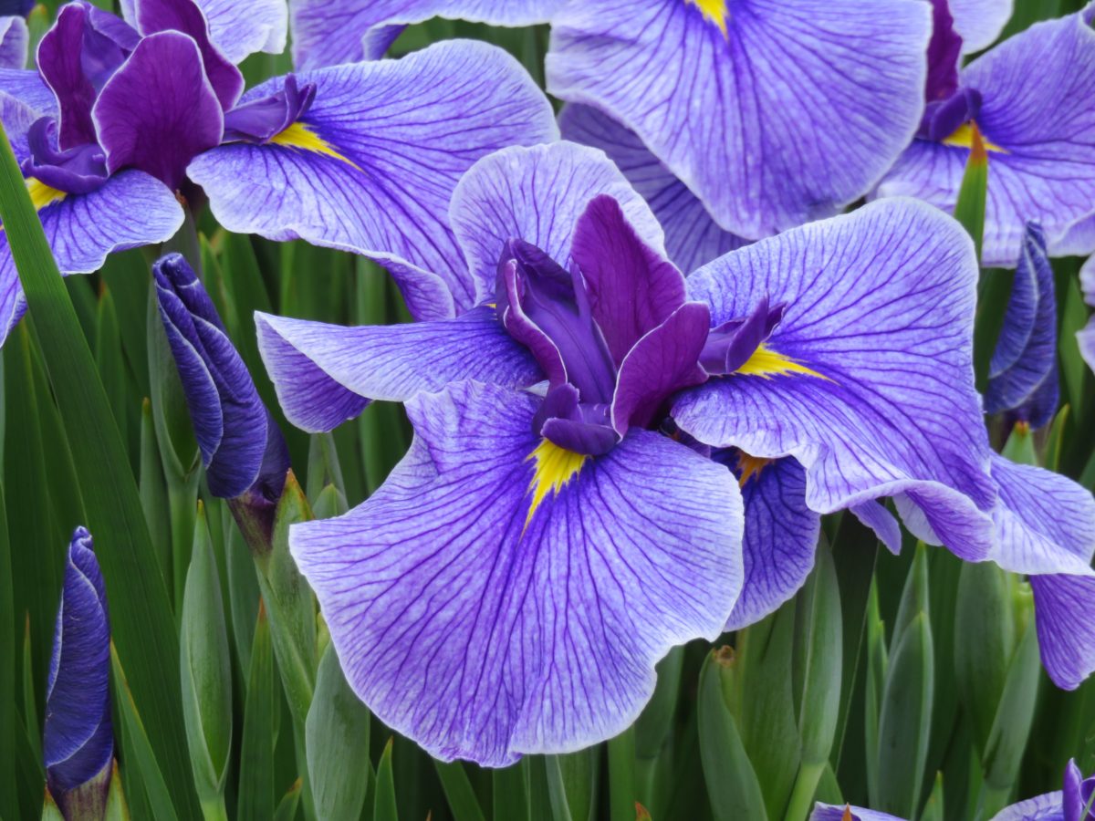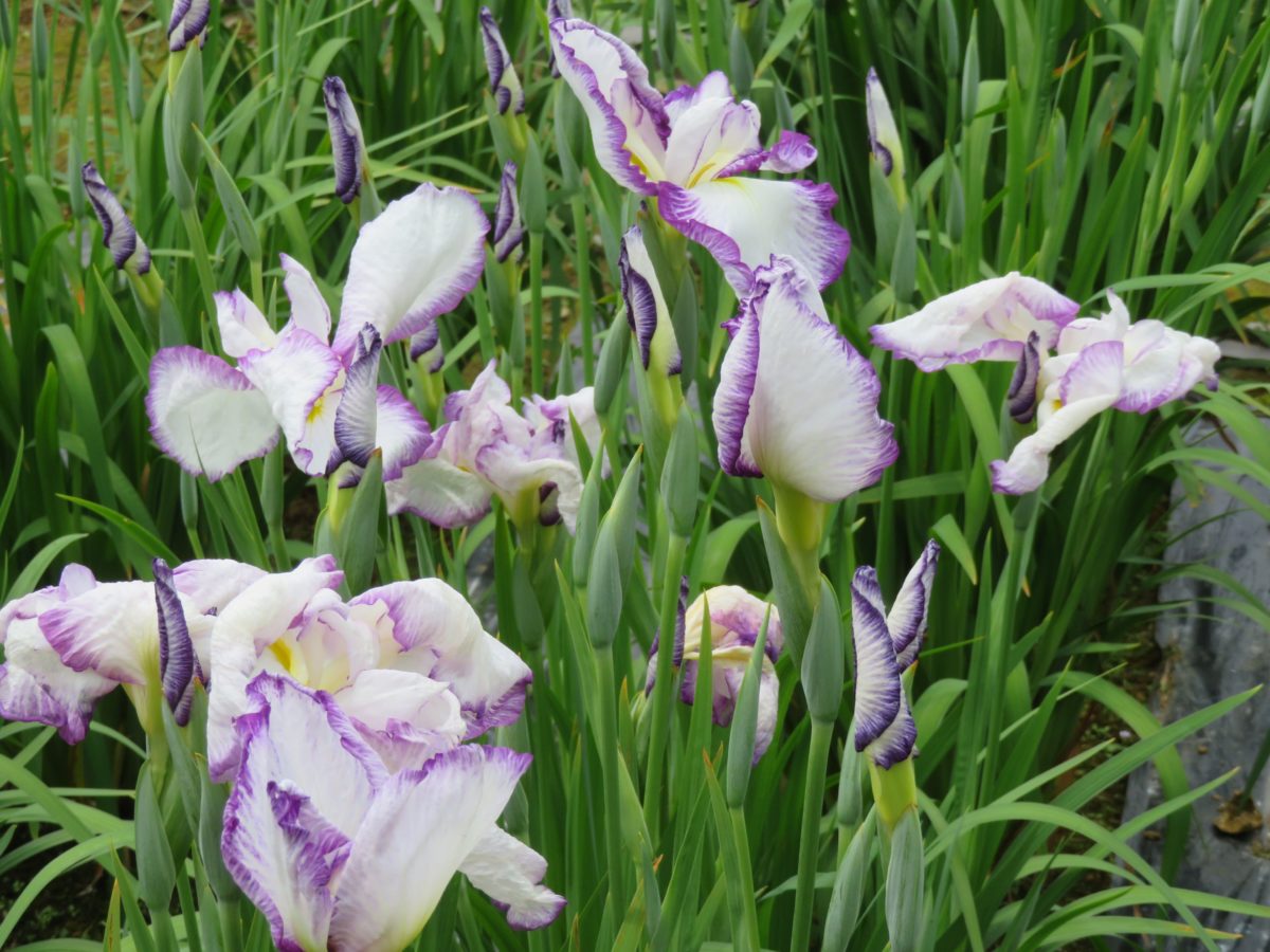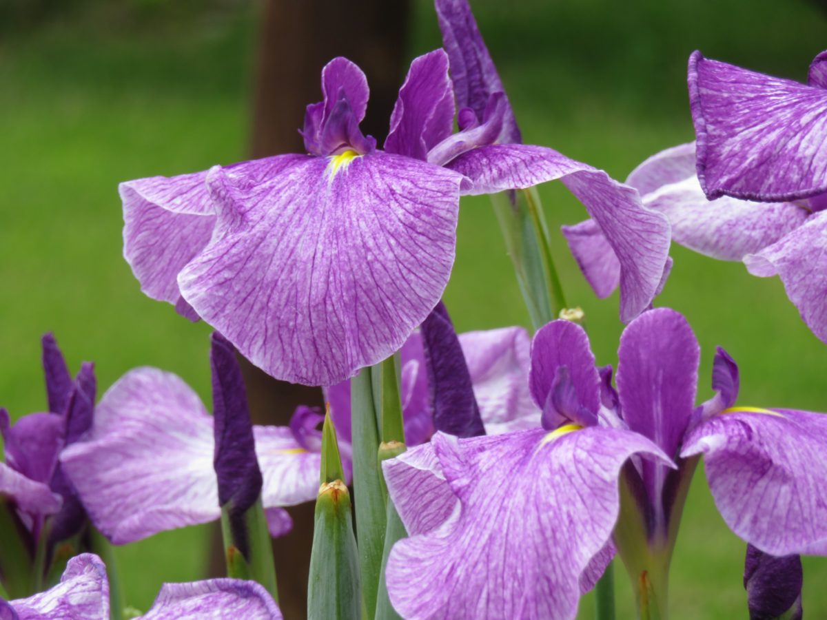 花しょうぶは、種類が豊富で数千種類が品種改良によって産み出されています。花弁の数や、花の開き方に加えて、花弁の模様にも注意を注ぐと、花しょうぶへの興味や愛着は底知れぬものとなることでしょう。花弁の表面の脈や筋、絞り、刷毛でぼかしたような模様、砂子模様、覆輪など、品種ごとに大きく異なります。