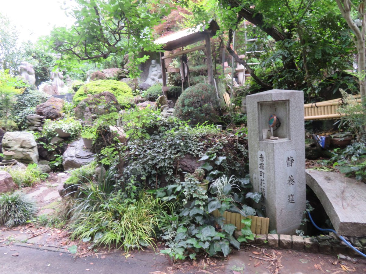 赤堀を経由する水路は、赤城山南麓の前橋市上泉町から伊勢崎市田部井町まで総延長約13キロにも及ぶ規模であったと伝わっています。赤堀花しょうぶ園の入口には石の灯篭や小橋が設置され歴史的な雰囲気を偲ばせています。