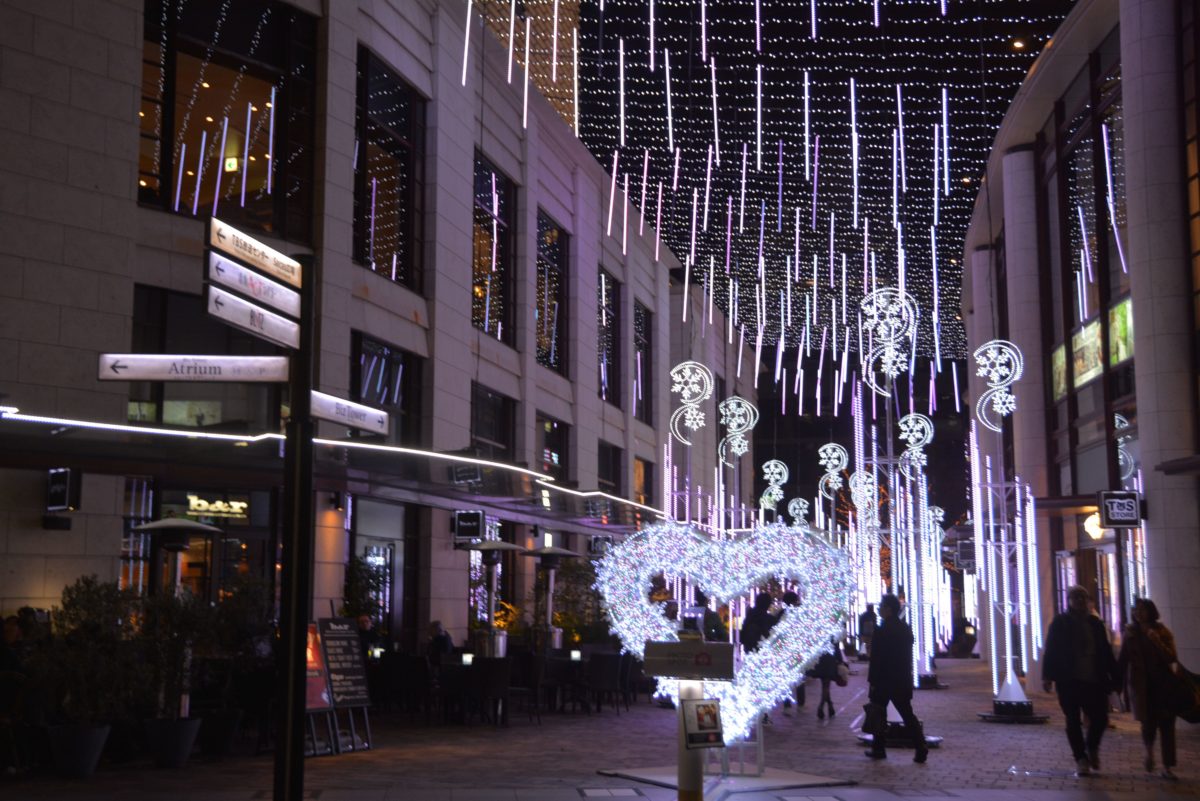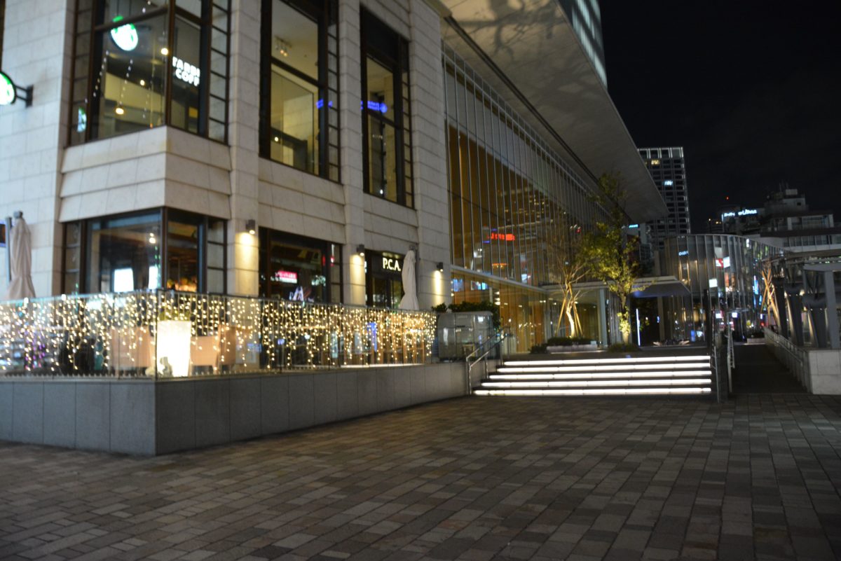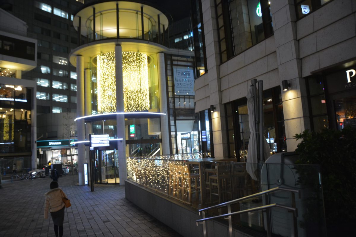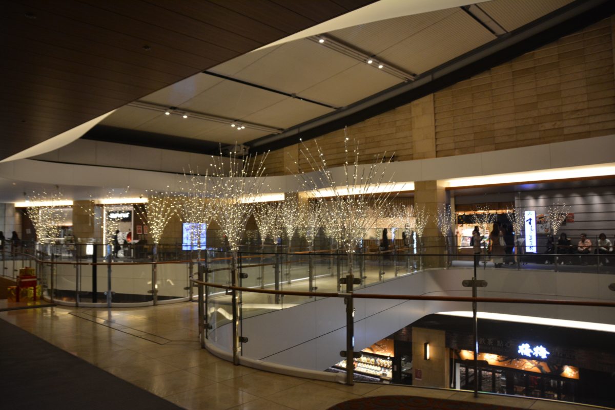 赤坂ビズタワー館内のイルミネーションを囲むグルメフロアー