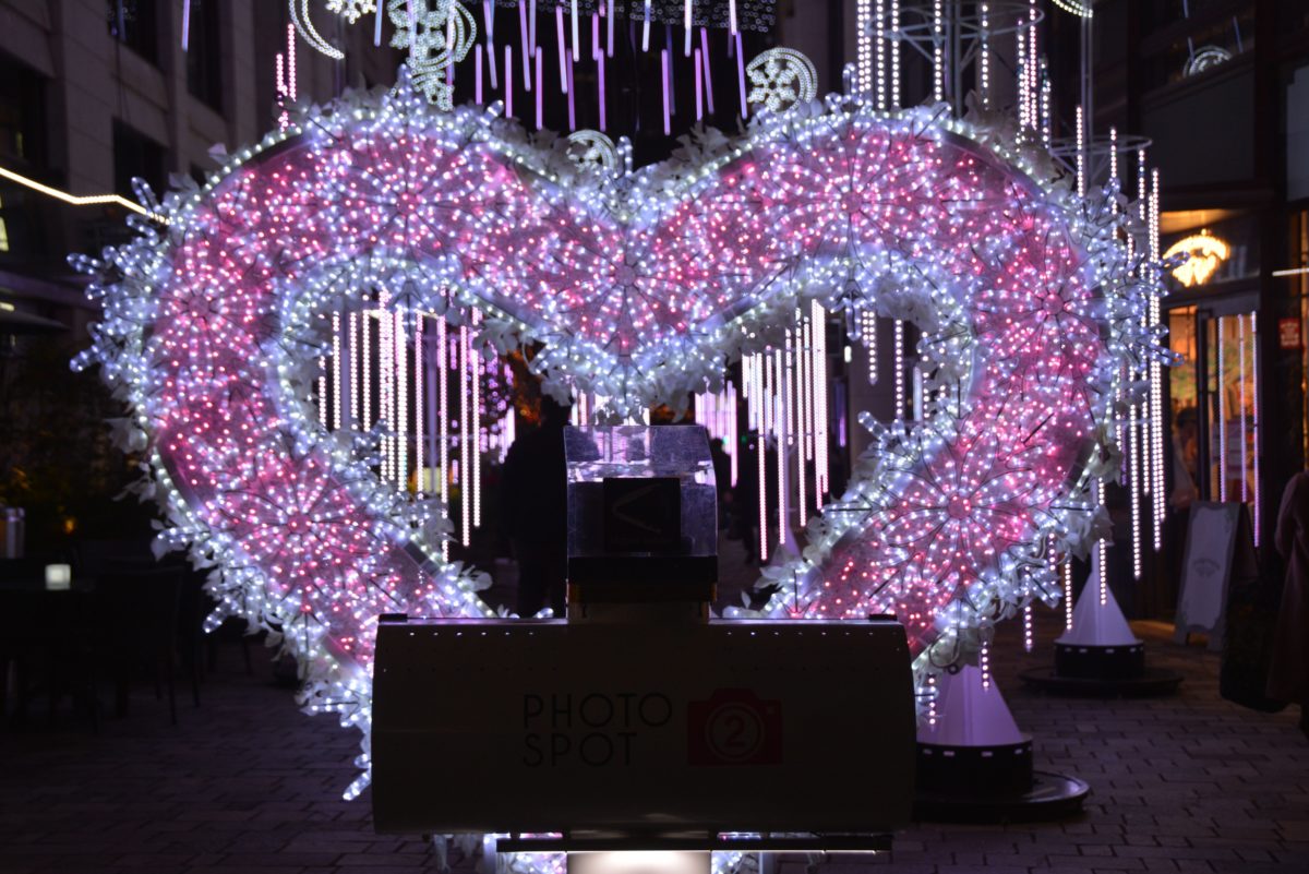 赤坂サカスのメインストリートの仲通りの入口に設けられたハート形のモチーフ