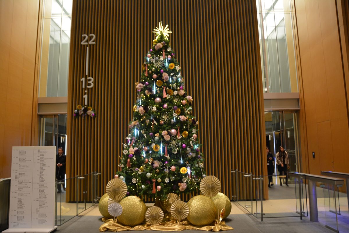 赤坂ビズタワーの正面玄関に設置されるクリスマスツリー