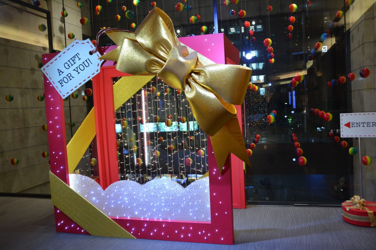 仲通りからイルミネーションで照らされる赤坂ビズタワーでは、館内もイルミネーションで装飾が施されています。正面玄関と2階のアトリウムにクリスマスツリーが設置されます。期間中には2階のアトリウムでコンサートも企画されています。
