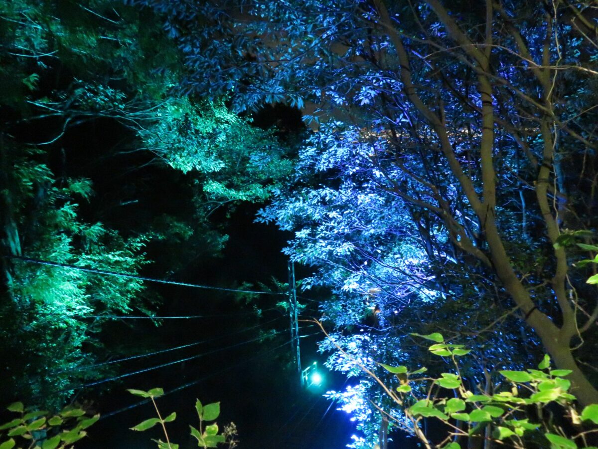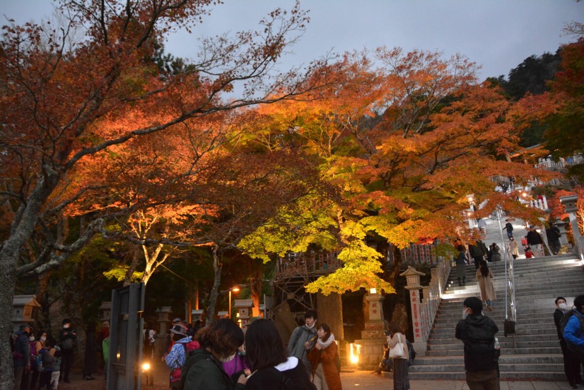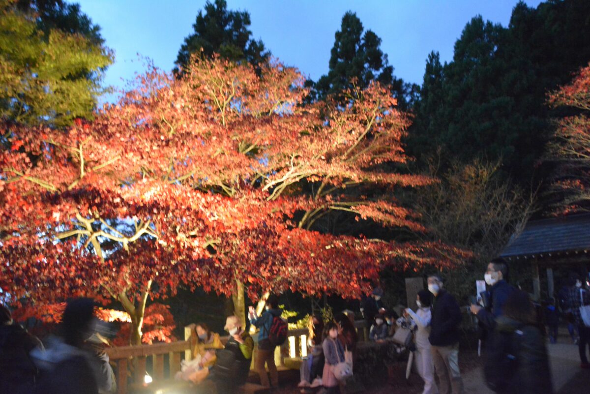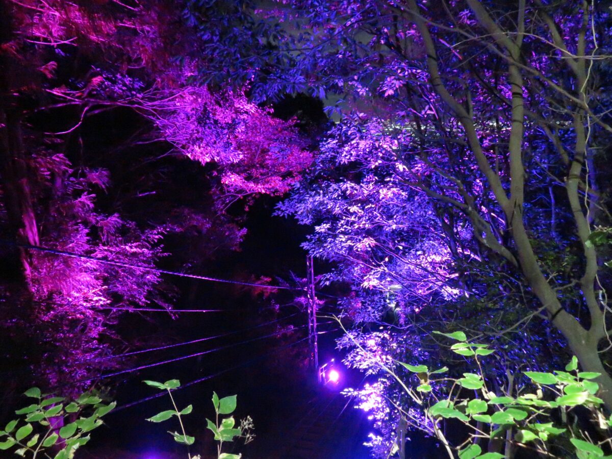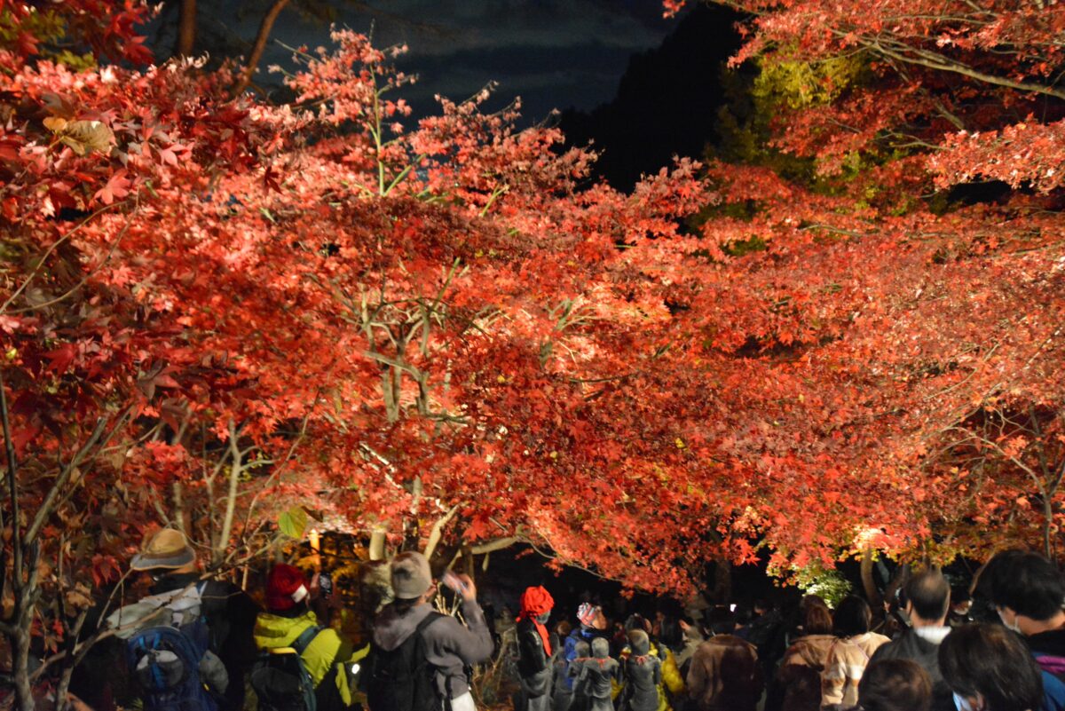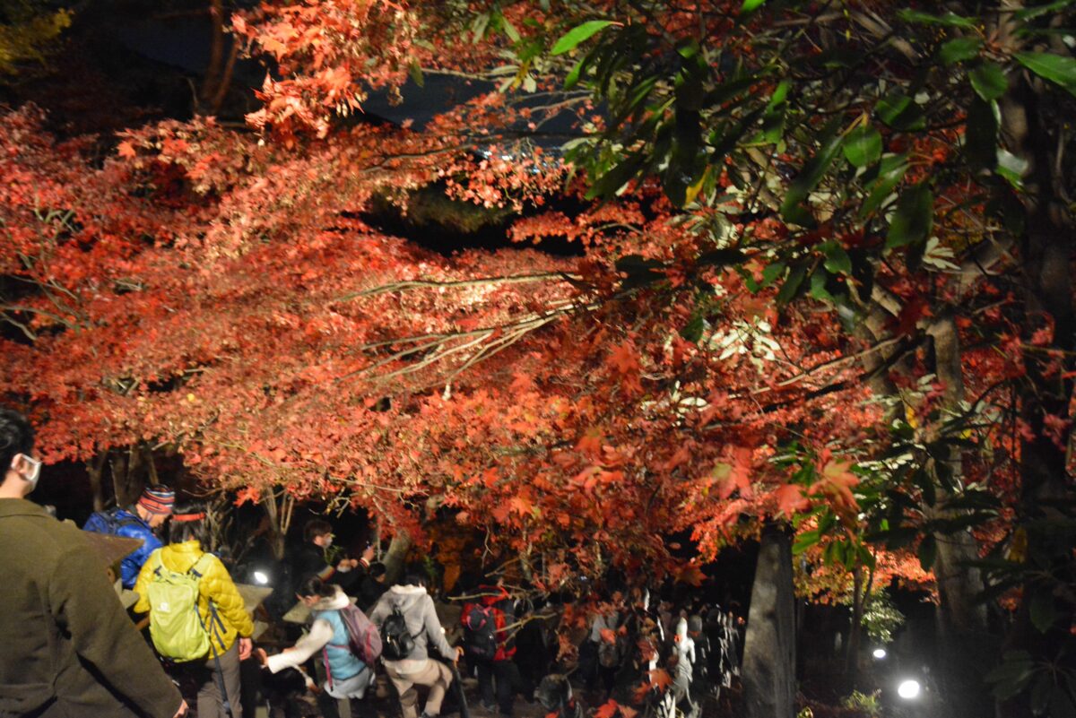 日中には太陽の光で輝く紅葉は、「秋の大山・夜景と紅葉」の期間中の夜間にはライトアップされ、異次元の空間を創り上げます。