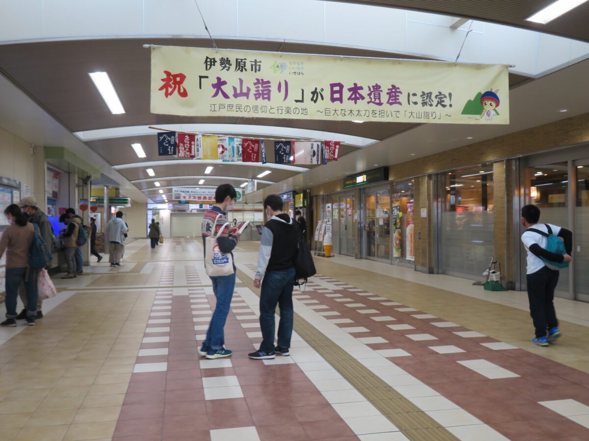 小田急線伊勢原駅で「大山詣り」の「日本遺産」認定を知らせる幕