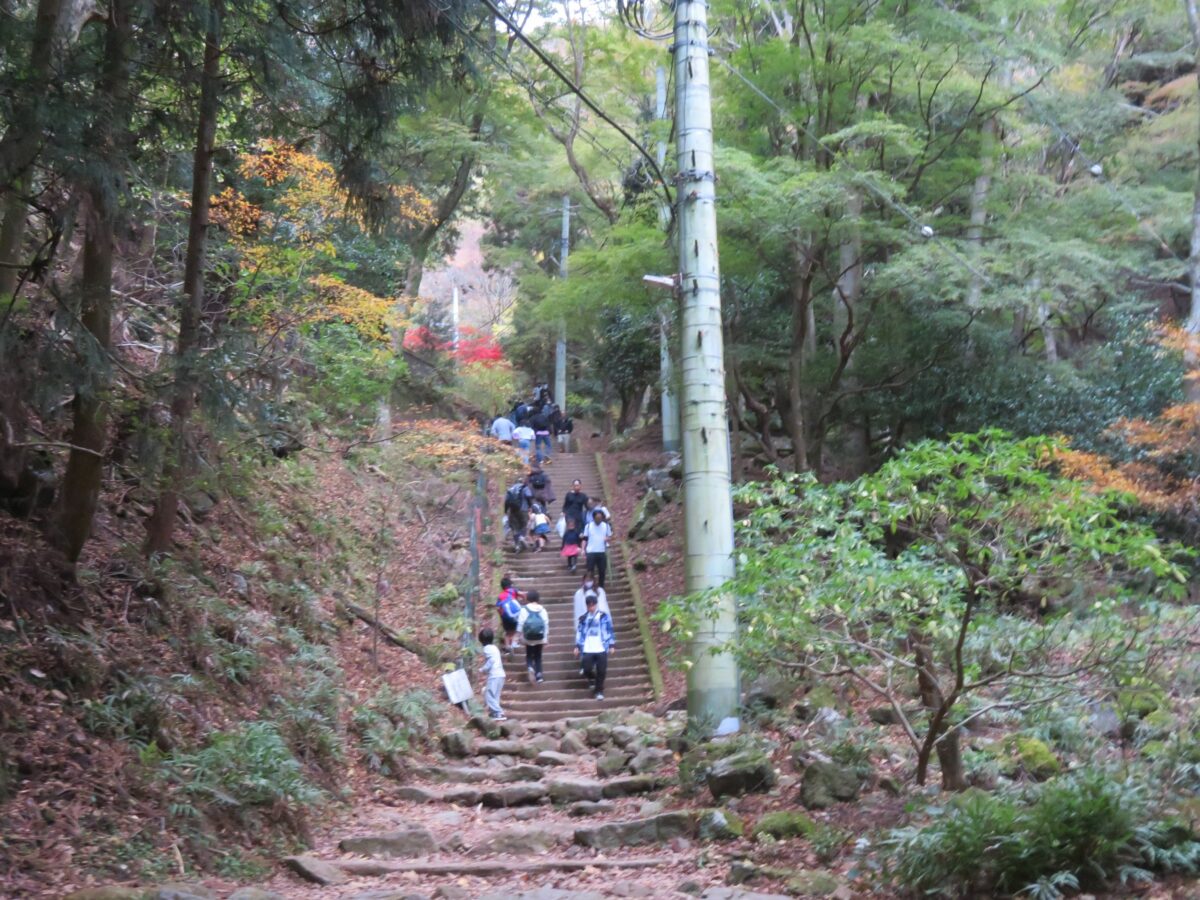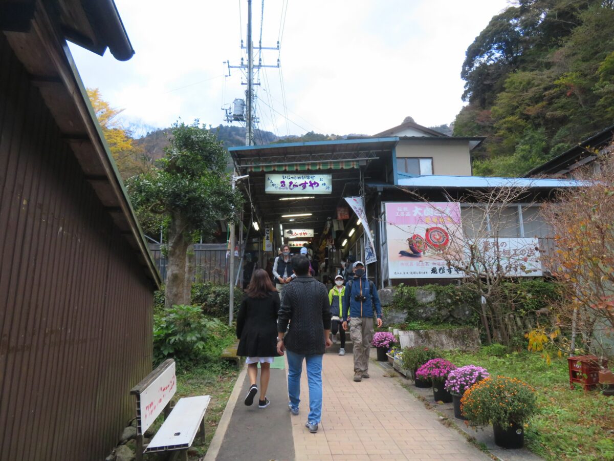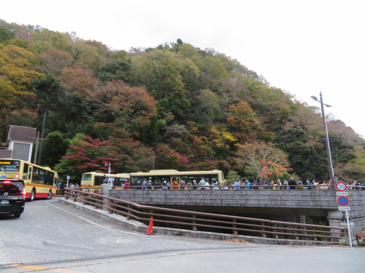 「こま参道」を約15分歩くと、ケーブルカーの乗場です。紅葉のシーズンは混み合います。乗車まで1時間以上、行列に並ばなければならないこともあります。密を避けることも難しいので、感染症が流行っている時期にはマスクの着用などが必須となることでしょう。