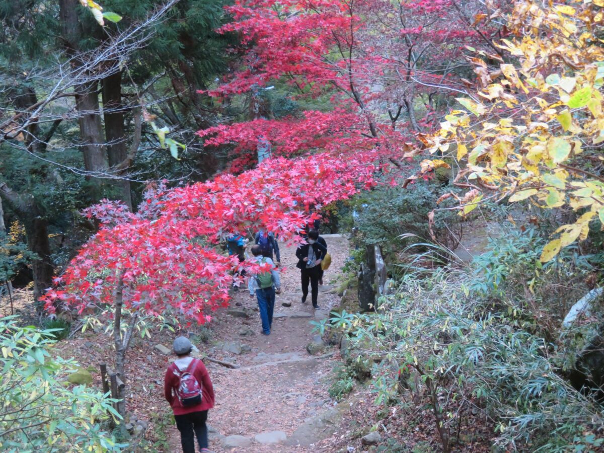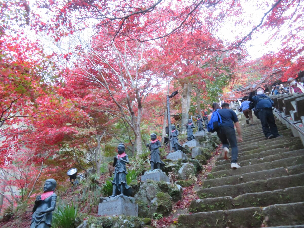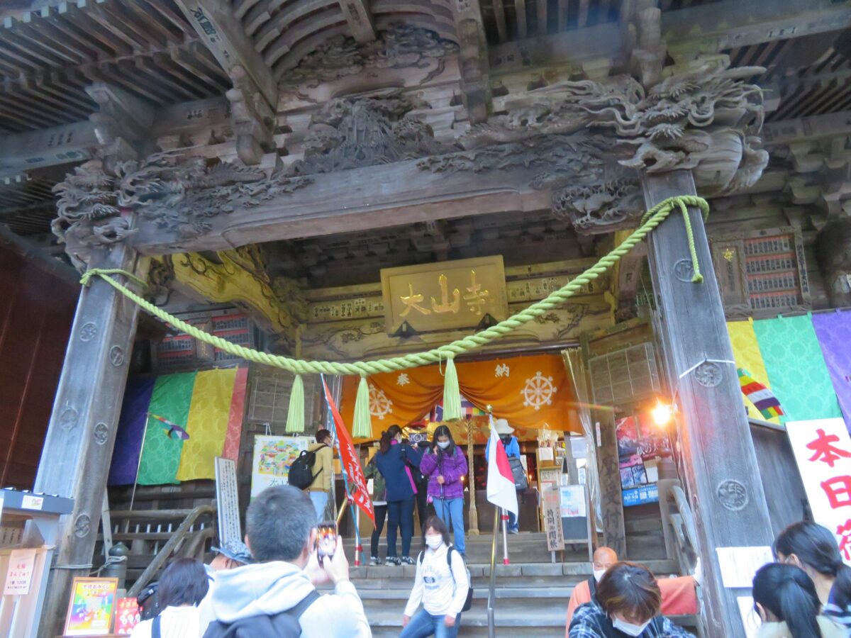 大山を約500メートル登ったところには、大山寺が建立されています。高幡山金剛寺、成田山新勝寺とともに、「関東の三大不動」に数えられています。境内の石階段をはじめ本堂、鐘楼、大師堂、手水舎は、例年11月中旬から下旬には、紅葉で真赤に染まります。