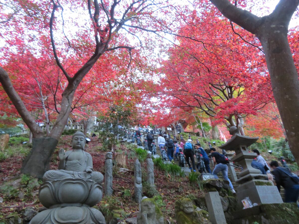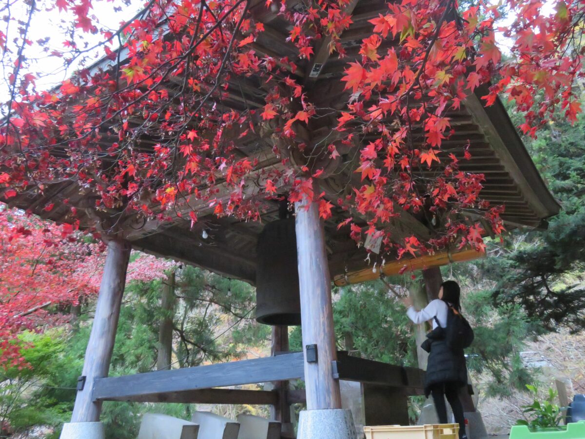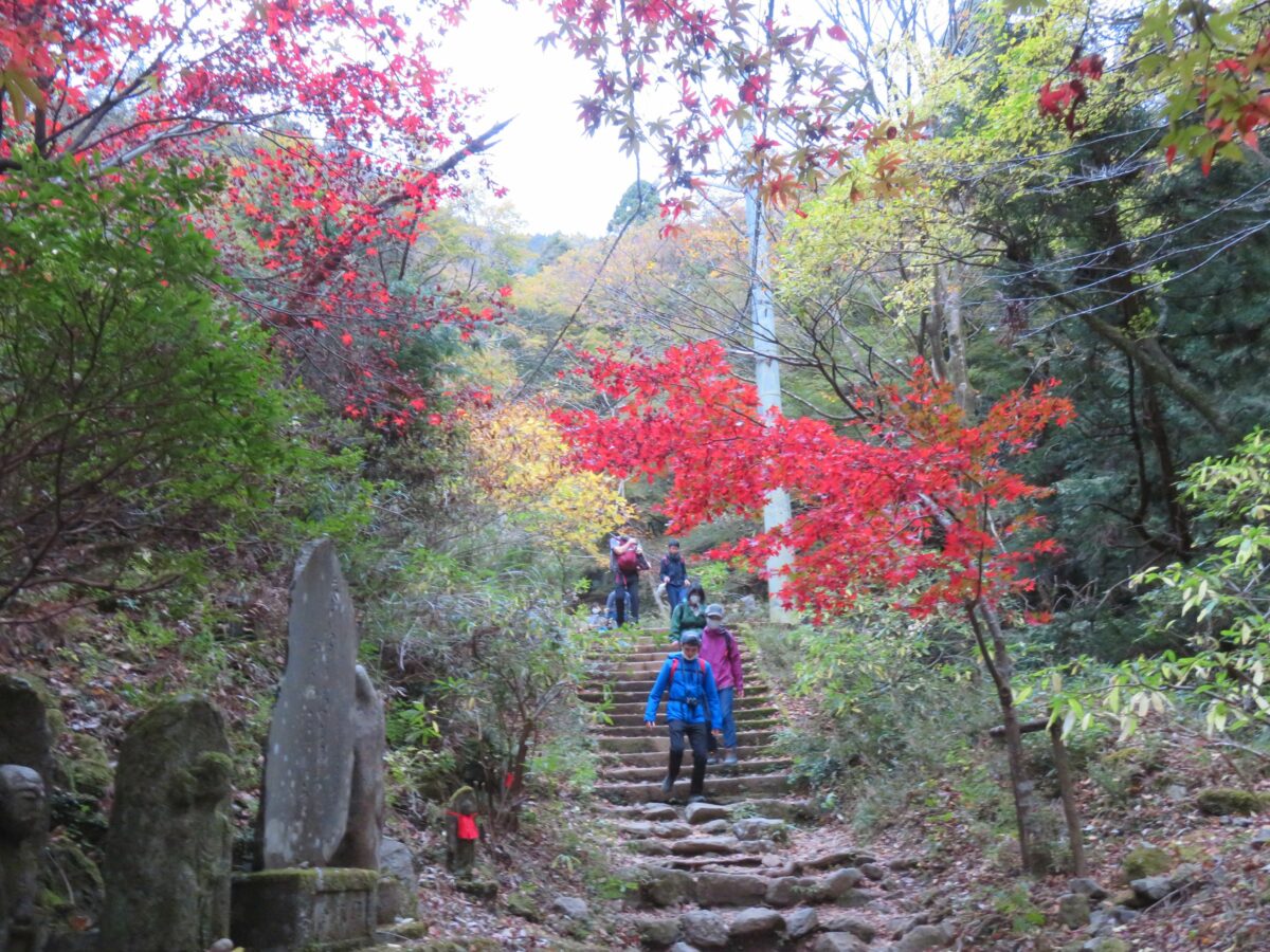 大山を約500メートル登ったところには、大山寺が建立されています。高幡山金剛寺、成田山新勝寺とともに、「関東の三大不動」に数えられています。境内の石階段をはじめ本堂、鐘楼、大師堂、手水舎は、例年11月中旬から下旬には、紅葉で真赤に染まります。