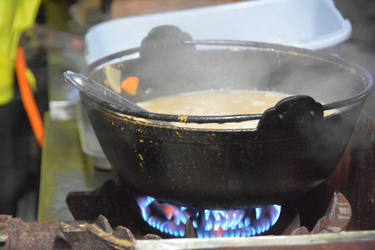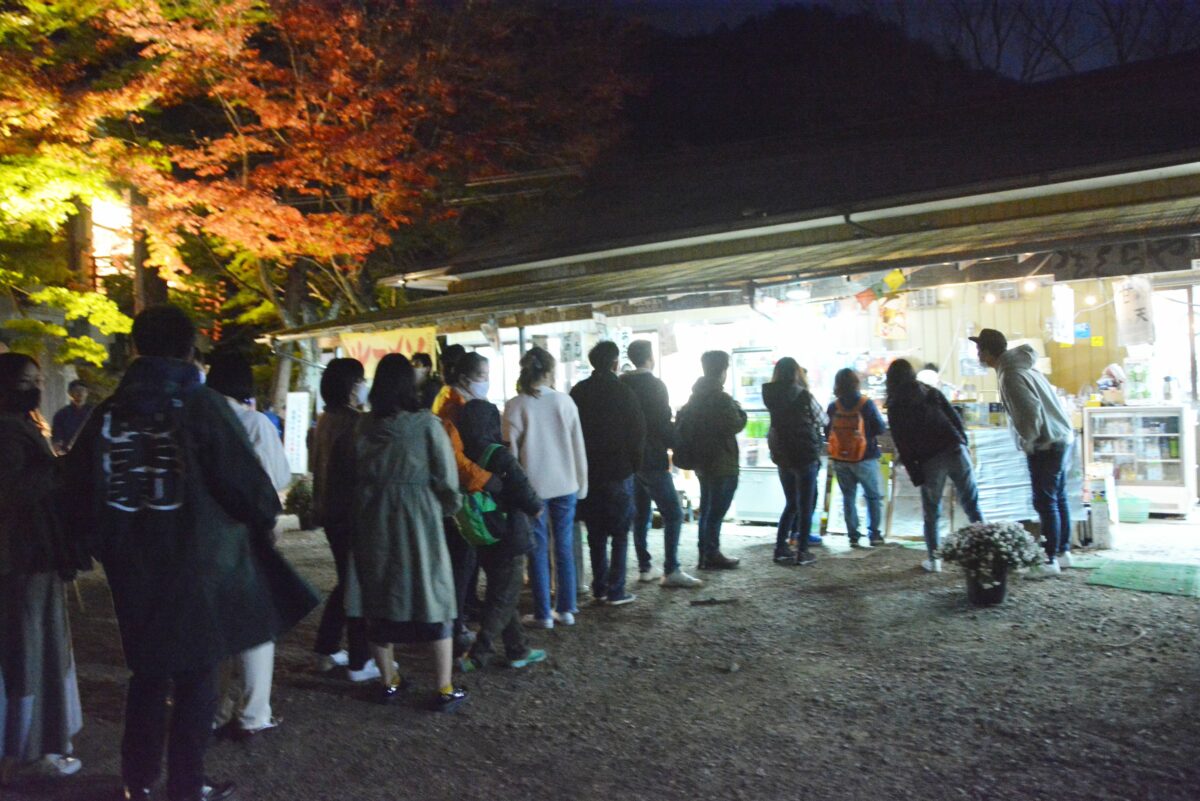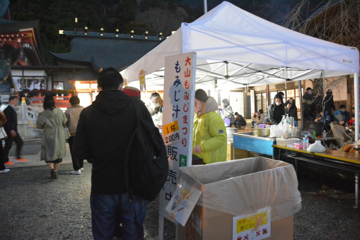 客殿前では、もみじ汁の露店が設けられているので、冷えた体を温めることができます。