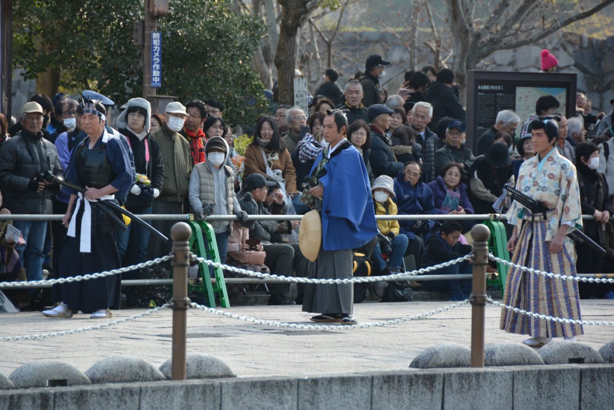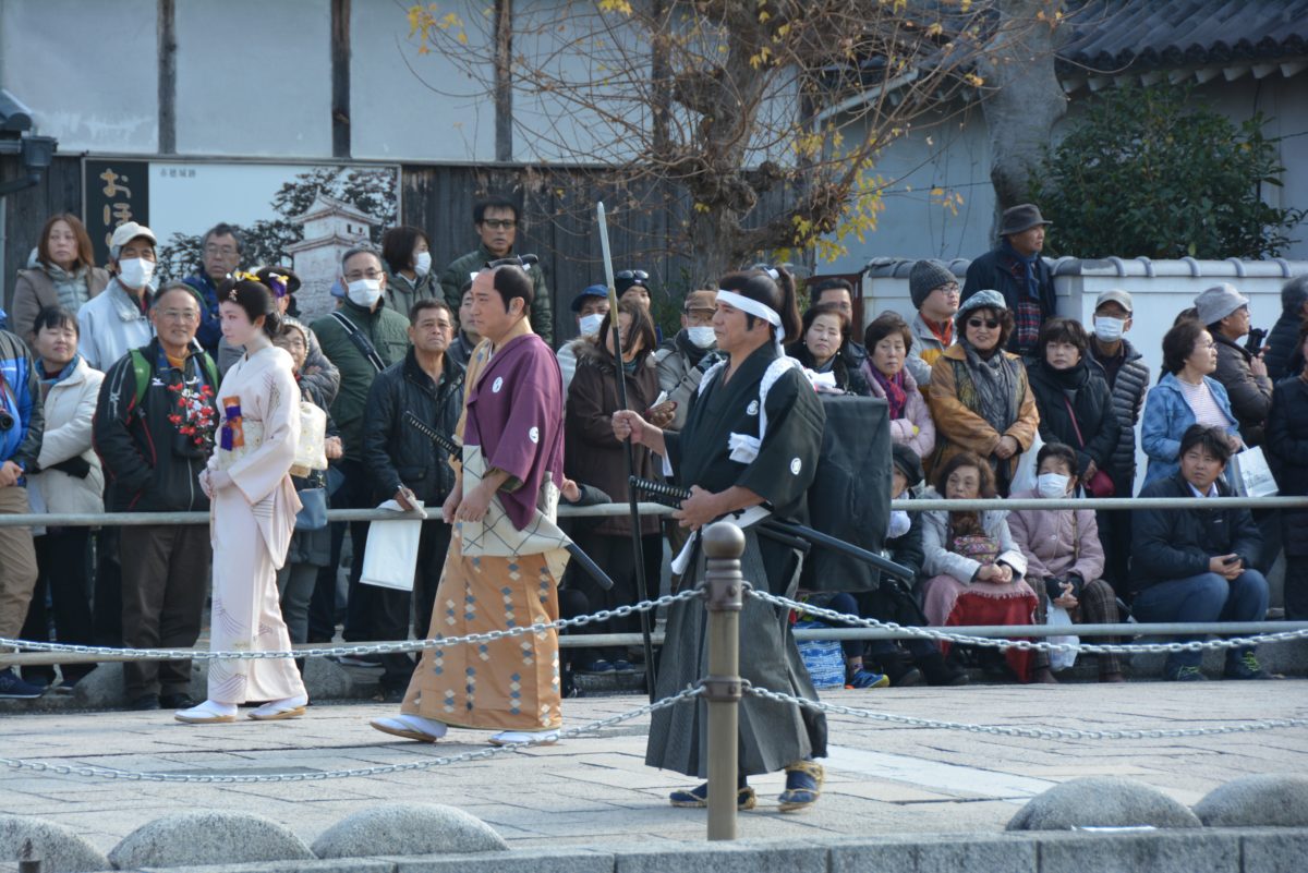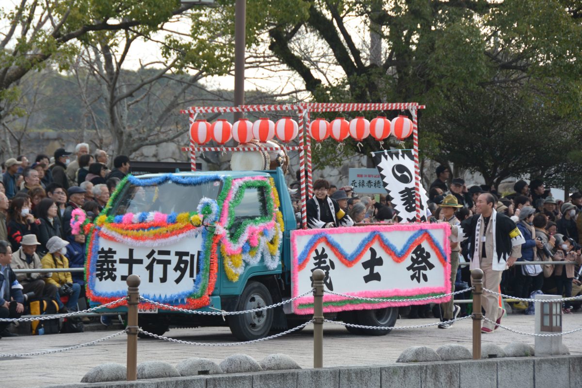 赤穂義士祭は、元禄年間に赤穂の義士が本懐を遂げた12月14日に毎年、赤穂市で開催されています。前半には祭気分を盛り上げる地元サークルによる音楽パレードなどが行われます。後半は「忠臣蔵」の世界が市内に溢れます。2019年の後半には、「大名行列」、「東映剣会殺陣」、「義士娘人力道中」、「子供大名行列」、「子供義士行列」、「義士伝行列」、「忠臣蔵名場面の山車」、そしてフィナーレに「義士行列」が行われました。