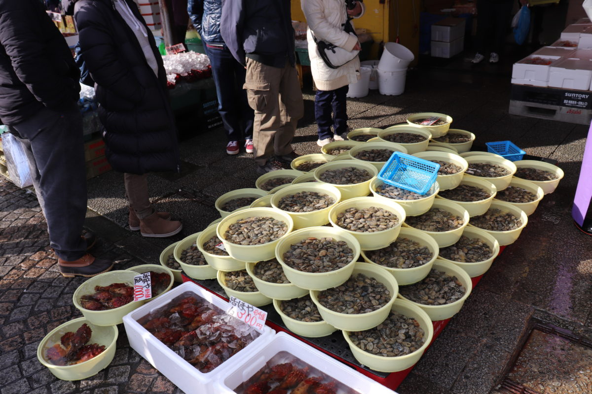 新鮮な魚たちが並ぶ朝の漁港を満喫しました!