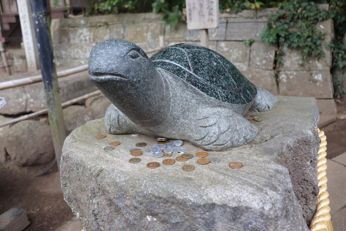 高額当選された方が亀石像を奉納したので、像に触ると当選のご利益があるとされ、年末ジャンボ宝くじのシーズンにもってこいな神社なのです!
