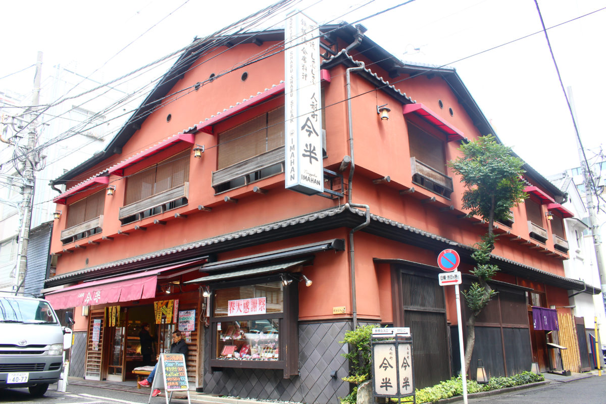 甘酒横丁の周辺には、お腹を満たせる老舗の名店がたくさんあります。例えば、すき焼きで有名な「今半」。こちらではお料理をいただけるだけでなく、テイクアウトのお総菜なども売っていて、夕方には多くの人でにぎわいます。