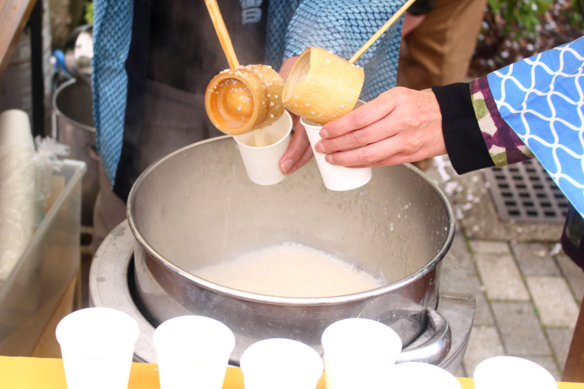 甘酒は地元の方が手作りでつくってくれています。2500杯がお祭りに合わせて無料で振舞われるとのこと。ありがたいですね!