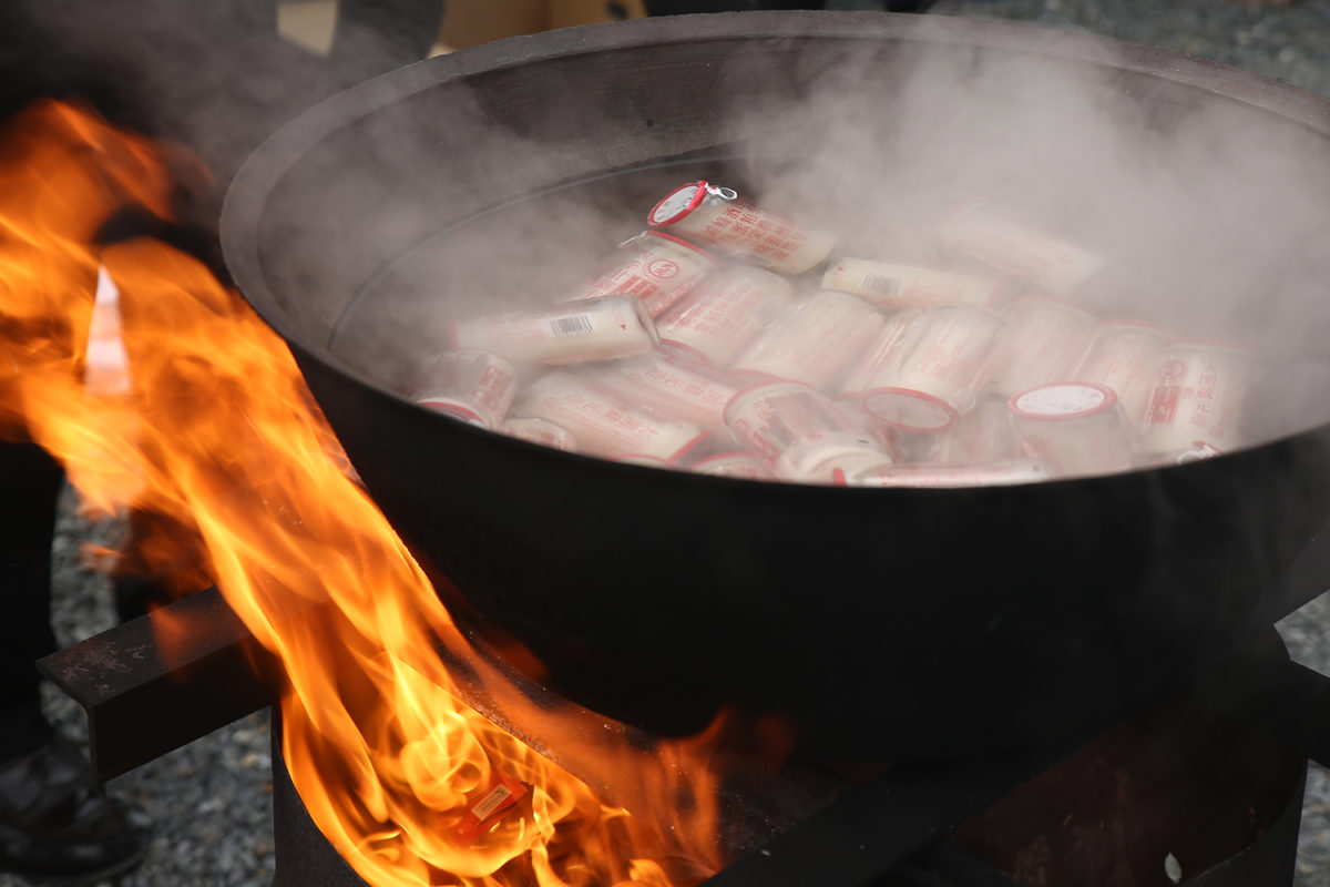 13:00を過ぎると地元の人たちが徐々に集まり、甘酒の振る舞いも始まります。
