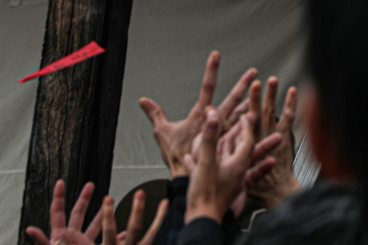 1枚か数枚取ったら交代するといいのでは…とも思いますが、500人ほどの参拝者で3000枚のお札がまかれ、束で持っている方もいます。