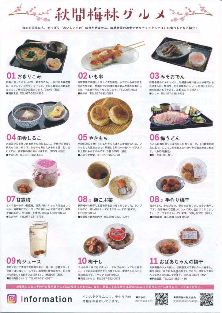 2020年の「秋間梅林祭」のチラシで紹介される秋間梅林グルメ