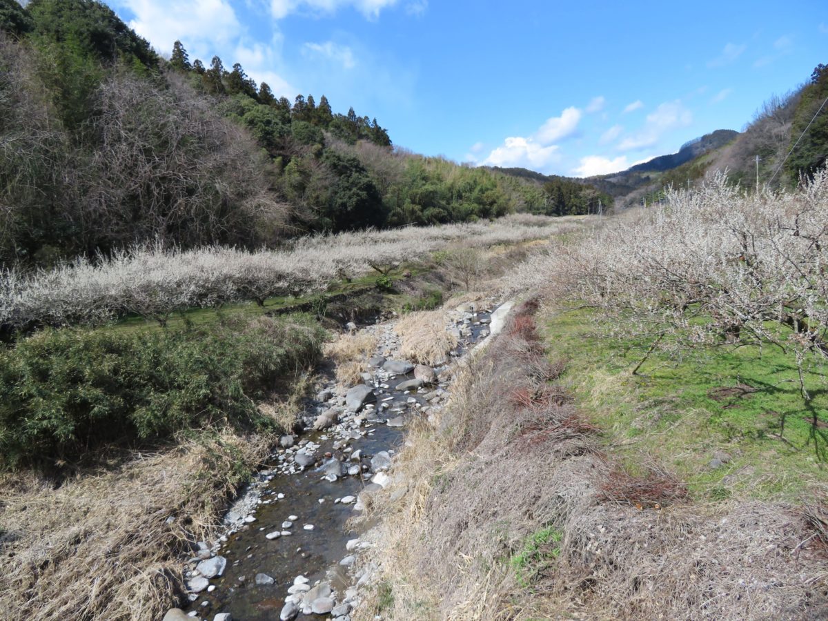秋間梅林の麓を流れる秋間川の両岸に繋がる梅林