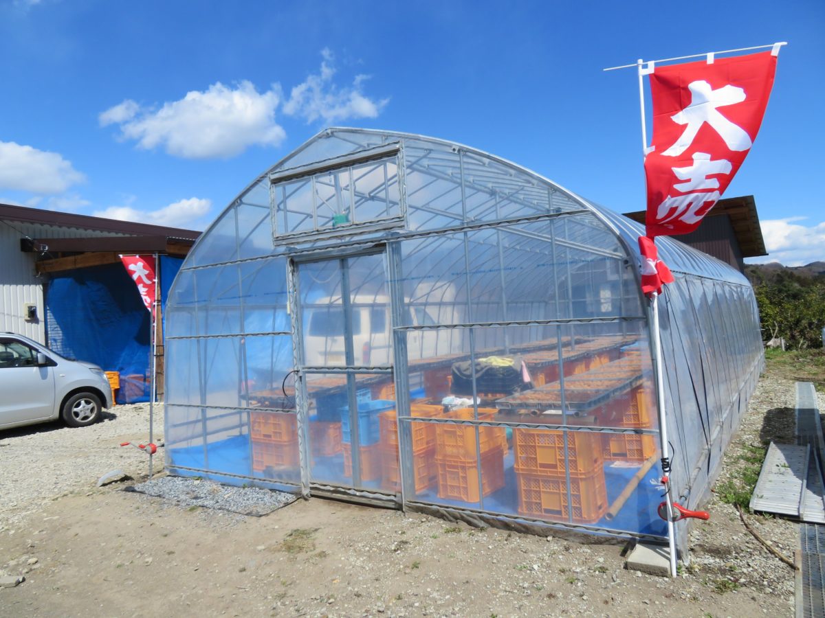 ビニールハウスで作られる梅干し