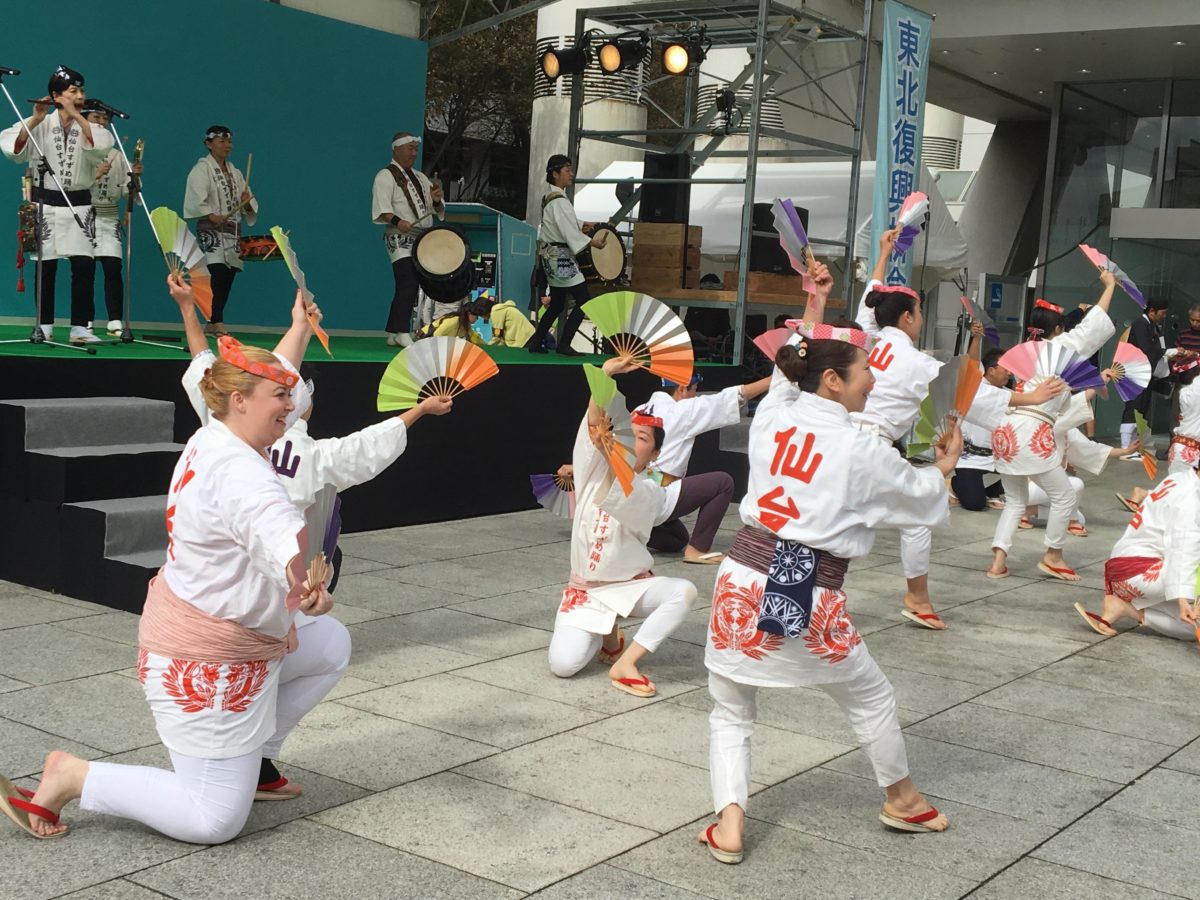 イチョウの色づく季節に、青山通りから明治神宮外苑いちょう並木にて青山まつりと東北絆まつりがみんなで大きな和を作って盛り上げました。