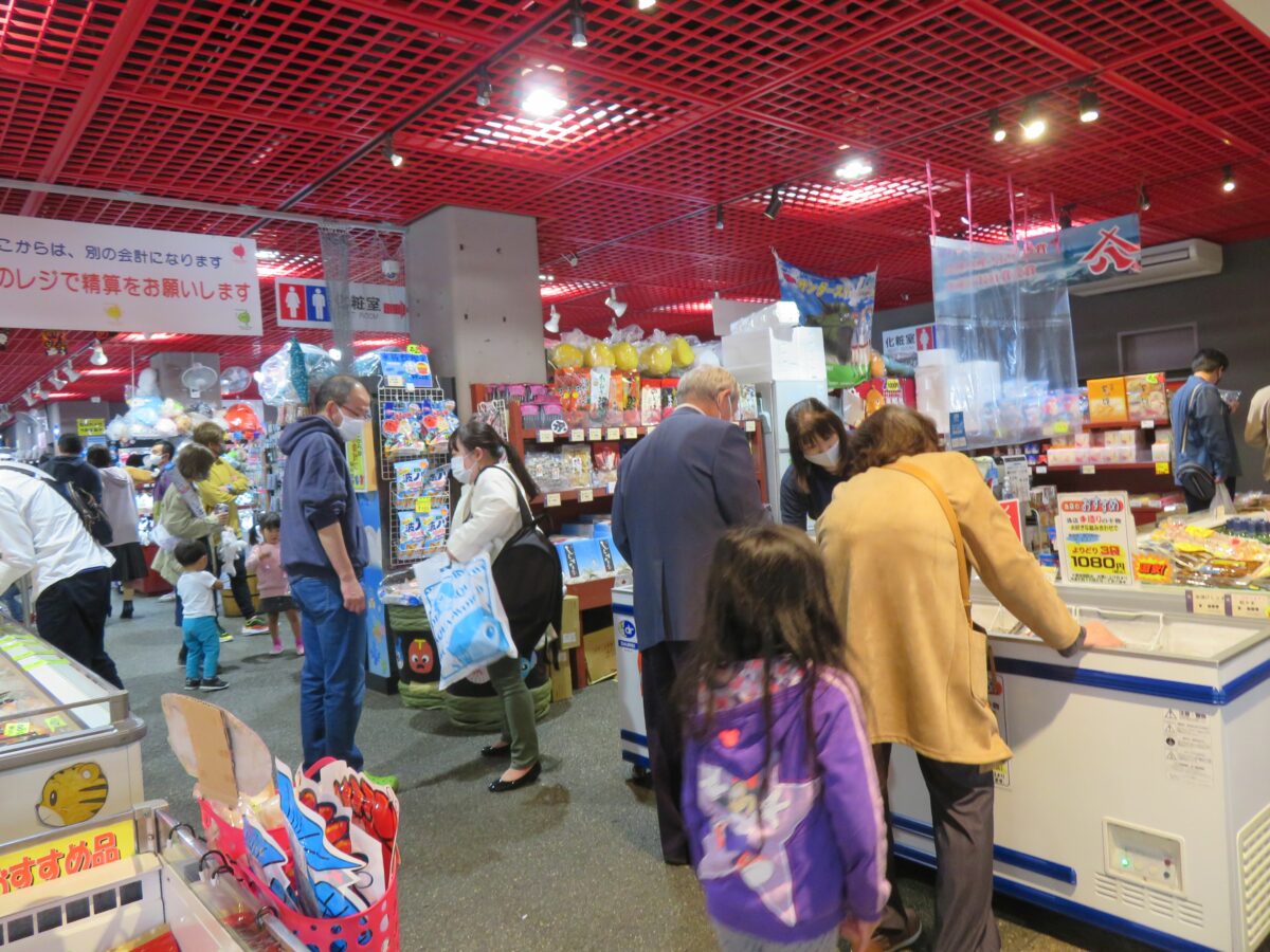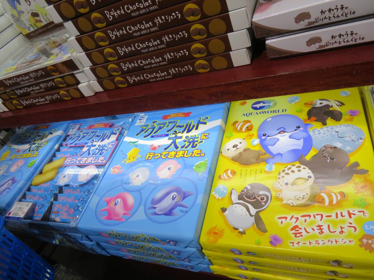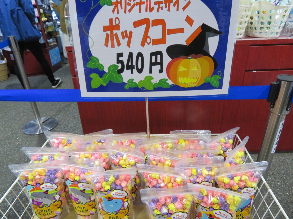 フードコートに接するショップの品揃えも豊富です。オリジナル商品やシーフードが店内にぎっしりです。「アクアワールド・ハロウィン」の期間中には、オリジナルデザインのポップコーンが販売されています。